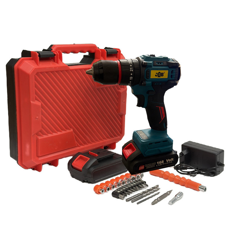 دریل پیچ گوشتی شارژی چکشی سه نظام فلزی 13 میلیمتر 168 ولت جاب مدل JB-168 PRO MAX مجموعه 40 عددی