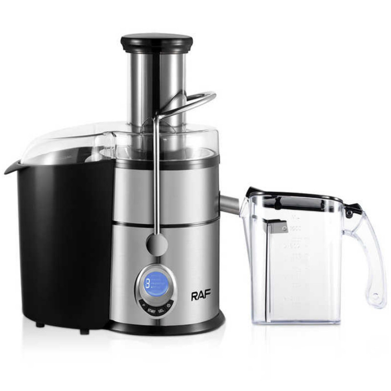آبمیوهگیری تک کاره راف مدل 2868 یکی از خاصترین تولیدات این شرکت می باشد که در عین قدرت بالایی که دارد، از عملکرد کم صدایی نیز برخوردار است. آبمیوهگیری راف مدل 2868 با توان مصرفی 800 وات و تیغههای برش از جنس استیل ضد زنگ توانایی آبگیری از انواع میوههای سخت و نرم را دارا می باشد. این آبمیوهگیری با دهانهای بزرگ (75 میلیمتری) امکان آبگیری میوهها بدون برش زدن آنها را فراهم میکند. بر روی بدنه نمایشگر دیجیتال تعبیه شده است که میتوان از طریق آن میزان سرعت دستگاه را مشاهده و تنظیم کرد. این دستگاه از تنظیمات سرعت در 5 درجه مختلف ساخته شده است که به شما کمک می کند انواع میوه ها را با توجه به میزان سختیشان عصاره گیری کنید. بدنه تمام استیل این دستگاه علاوه بر زیباتر کردن ظاهر آن، موجب افزایش کیفیت و دوام این آبمیوه گیری گردیده است، به طوری که این بدنه استیل در اثر استفاده و تماس با آبمیوههای قلیایی زنگ نزده و فرسوده نمیشود. همچنین همراه با این دستگاه یک عدد پارچ ابمیوه بزرگ با ظرفیت 1 لیتری می باشد که در امر آب میوه گیری به شما کمک شایانی می کند. از دیگر ویژگی های این دستگاه می توان به صفحه نمایش LCD با نور پسزمینه ، قفل ایمنی و پایه ضد لرزش و عملکرد بی صدا اشاره کرد. در مجموع اگر به دنبال دستگاهی هستید که برای مدتها خیال شما را از داشتن یک دستگاه آبمیوه گیری با کیفیت راحت کند، ابمیوه گیری راف مدل 2868 می تواند گزینه ای مناسب برای شما باشد.