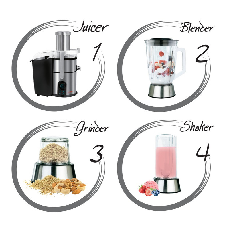 • موتور ۸۰۰ وات قدرت لازم برای آبگیری انواع میوهها را تأمین میکند.