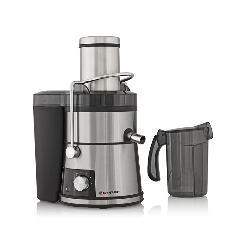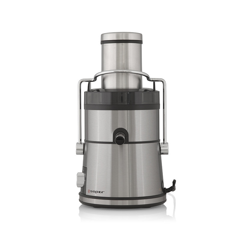 آبمیوه گیری ۴ کاره ساپر SJBG-850S با ظرفیت بالایی که دارد میتواند هر روزه نوشیدنی تازه، گوارا و طبیعی تهیه کند. این دستگاه با داشتن مخزن تفاله میتواند برای مدت طولانی کار کند و نیاز به قطع فعالیت به خاطر خالی کردن تفاله ندارد. پیچ تنظیم سرعت دستگاه این امکان را ایجاد میکند تا برای میوه های مختلف سرعت های مختلف را انتخاب کرد. این مدل ۲ نوع سرعت و ۱ حالت پالس دارد. پایههای ضد لغزش این مدل باعث ایستایی دستگاه در حین کار میشود.