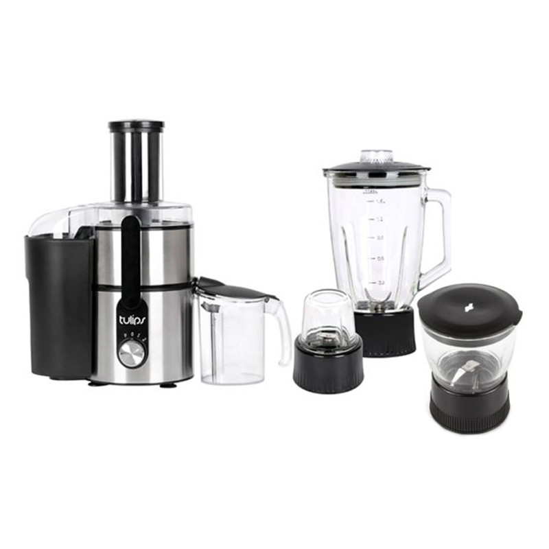 آبمیوه گیری تولیپس مدل Fj-A480 از قدرت و کیفیت مناسبی برخوردار است. صدای ایجاد شده توسط این آبمیوه گیری مانند آبمیوه گیریهای قدیمی بسیار زیاد و آزار دهنده نیست. همچنین تیغههای آن از کیفیت مناسب ساخته شدهاند و بسیار تیز هستند. برای خرید یک آبمیوه گیری خوب به قطر دهانه آن توجه کنید. امروزه اکثر آبمیوه گیریها، برای راحتی کاربران با قطر دهانه بزرگ ساخته شدهاند. بزرگ بودن قطر دهانه، یکی از مزیتهای یک آبمیوهگیری خوب محسوب میشود چرا که به شما این امکان را میدهد تا میوههای کوچک و متوسط را بدون نیاز به برش آبگیری کنید. یک پارچ مخصوص برای آبمیوه گیری تولیپس مدل Fj-A480 طراحی شده است تا در برابر دهانه خروجی قرار گیرد و آب میوه در آن جمع آوری شود. کاربران گرامی میتوانند از ظرف دلخواه و مناسب نیز برای جمع آوری آب میوه استفاده کنند. محفظه جمع آوری تفاله که در قسمت کناری محصول قرار دارد از پلاستیک ساخته شده است. همچنین این محفظه از ظرفیت مناسبی برخوردار است و نیاز به تخیه پی در پی در استفاده طولانی مدت ندارد. مخلوط کن و خرد کن این محصول دارای یک پارچ مخصوص مخلوط کن است که به بدنه اصلی و موتور دستگاه متصل میشود و دستگاه به راحتی تبدیل به یک مخلوط کن و یا خرد کن میشود. پارچ مخلوط کن، خرد کن و آسیاب از شیشه مرغوب ساخته شده است که حالت شفاف دارد و مواد درون آن دیده میشوند. در این پارچ دارای جایگاه مخصوص برای اضافه کردن مواد در حین کار است. با وجود این جایگاه مخصوص، میتوانید انواع مواد مانند شکر و… را در حین کار کردن دستگاه و بدون نیاز به خاموش کردن موتور اضافه کنید. آسیاب بهمراه آبمیوه گیری تولیپس مدل Fj-A480 یک آسیاب کوچک نیز وجود دارد که برای استفاده از آن نیز باید آن را به موتور دستگاه متصل کنید. تیغههای آسیاب نیز از جنس خوب ساخته شدهاند و بسیار تیز هستند که به سرعت موادی مثل گردو و… را آسیاب میکنند، سرعت مختلف این محصول دارای دو سرعت کم و زیاد و عملکرد پالس است. با توجه به نیاز خود و نوع مواد، امکان استفاده از سرعت مناسب وجود دارد.