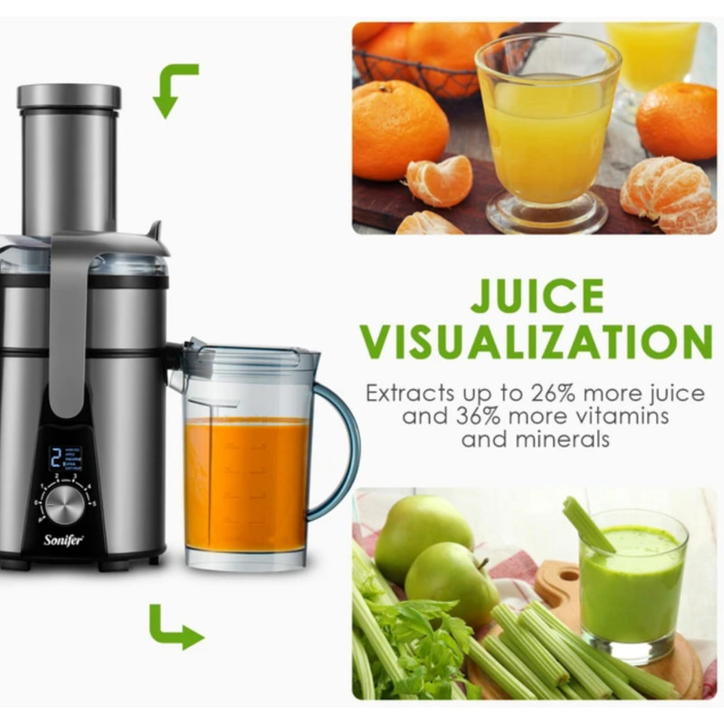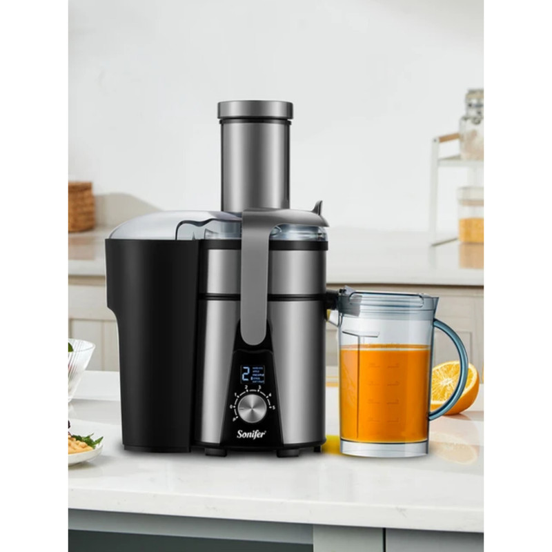 برند سونیفر یکی از برندهای خوش نام تولید لوازم برقی آشپزخانه است. یکی از با کیفیت ترین محصولات این برند میتوان به آبمیوهگیری تک کاره سونیفر مدل SF-5536 اشاره کرد. که در عین قدرت بالایی که دارد، بسیار کم صدا می باشد. آبمیوهگیری سونیفر مدل 5536 با توان مصرفی 1300 وات و بدنه استیل از جمله محصولات بسیار با کیفیت این شرکت محسوب میشود. این آبمیوهگیری با دهانهای بزرگ (84 میلیمتری) امکان آبگیری میوهها بدون برش زدن آنها را فراهم میکند. بر روی بدنه نمایشگر دیجیتال تعبیه شده است که میتوان از طریق آن میزان سرعت دستگاه را مشاهده و تنظیم کرد. این دستگاه از تنظیمات سرعت در 5 درجه مختلف ساخته شده است که به شما کمک می کند انواع میوه ها را با توجه به میزان سختیشان عصاره گیری کنید. بدنه تمام استیل این دستگاه علاوه بر زیباتر کردن ظاهر آن، موجب افزایش کیفیت و دوام این آبمیوه گیری گردیده است، به طوری که این بدنه استیل در اثر استفاده و تماس با آبمیوههای قلیایی زنگ نزده و فرسوده نمیشود. همچنین همراه با این دستگاه یک عدد پارچ ابمیوه بزرگ با ظرفیت 1.2 لیتری می باشد که در امر آب میوه گیری به شما کمک شایانی می کند. از دیگر ویژگی های این دستگاه می توان به صفحه نمایش LCD با نور پسزمینه ، قفل ایمنی و پایه ضد لرزش و عملکرد کاملا بی صدا اشاره کرد. در مجموع اگر به دنبال دستگاهی هستید که برای سالیان سال خیال شما را از داشتن یک دستگاه آبمیوه گیری با کیفیت راحت کند، سونیفر می تواند گزینه ای مناسب برای شما باشد.