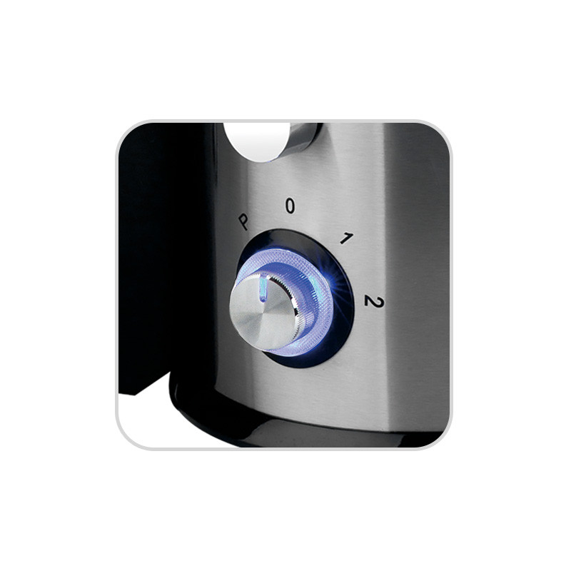 بر روی بدنه ولوم چرخشی روشن و خاموش و تنظیم سرعت موتور در دو حالت کم و زیاد همراه با عملکرد پالس (ضربه ای) تعبیه شده است. قطر بزرگ دهانهی آبمیوهگیری امکان ورود میوهی درسته (مانند یک سیب کامل) را بدون نیاز به خرد کردن آن فراهم میکند.