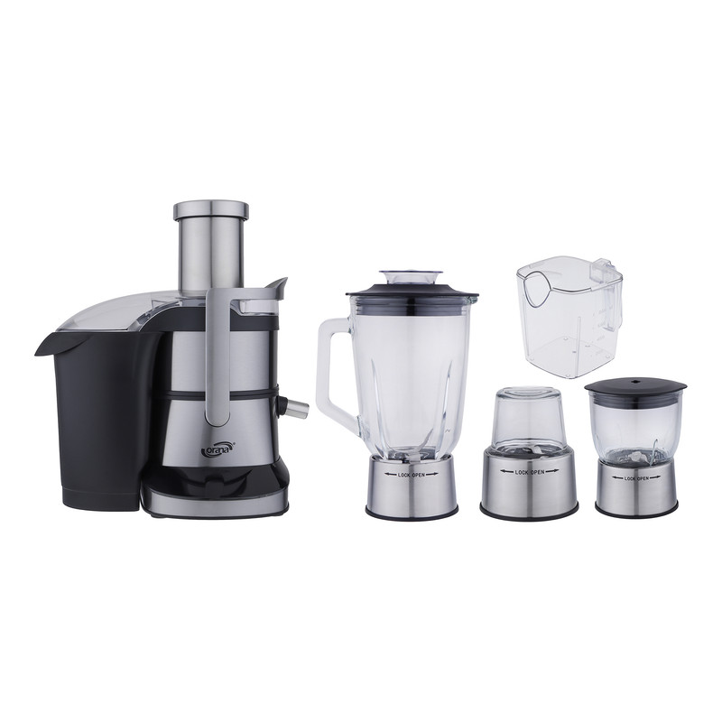 در روزهای گرم تابستان و یا یک روز شلوغ کاری هیچ چیز به اندازه یک لیوان آبمیوه خنک لذت بخش نیست. آبمیوه های صنعتی به دلیل وجود مواد نگهدارنده معمولا طعم و مزه واقعی خود را ندارند به همین دلیل اغلب مردم ترجیح می دهند از آبمیوه های طبیعی استفاده کنند که این مستلزم داشتن یک دستگاه آبمیوه گیر باکیفیت می باشد. آبمیوه گیری ۹۵۰-WKJ چهار کاره ویکند یک محصول باکیفیت که نیاز هر خانه ای را برطرف میکند.آبمیوه گیری ویکند مدل WKJ-950 یکی از مدل های آبمیوه گیری ویکند با توان مصرفی ۸۰۰ وات و جنس بدنه از استیل ضد زنگ و پلاستیک میباشد که نیاز شما را برای خرید دستگاه های دیگر از جمله مخلوط کن و آسیاب و خردکن را برطرف میکند. این آبمیوه گیری دارای صفحه دیجیتال می باشد که می تواند به صورت لمسی سرعت آن را افزایش دهید.فیلتر دستگاه متحرک و تیغه ها از جنس استیل ضد زنگ ساخته شده است که دوام و کیفیت بالایی دارند و به راحتی قابل شستشو هستند.از دیگر ویژگی های آبمیوه گیری ویکند میتوان به سیستم ضد چکه، قفل ایمنی، دهانه بزرگ ۸۵ میلی متر برای ورود میوه درسته، سیستم حفاظت از گرما اشاره کرد.یکی از ویژگیهای این دستگاه مخلوط کن میباشد که جنس پارچ مخلوط کن شیشه ای و ضد خش می باشد و مواد در حال مخلوط شدن قابل مشاهده می باشند و دارای درپوش پلاستیکی می باشد که دقیقا روی پارچ قرار می گیرد و از قسمت شکر ریز روی درب می توان چاشنی های مورد نیاز را به مواد در حال مخلوط اضافه کنیم.برای بالا بردن امنیت دستگاه دارای سوئیچ ایمنی می باشد که بدون قرار گرفتن پارچ یا آسیاب دستگاه کار نمیکند دارای پایه ضد لغزش برای جلوگیری از لرزش زیاد دستگاه در حین کار کردن می باشد و دارای مخزن تفاله ۲ لیتری که برای آب گیری پیاپی مناسب می باشد. پارچ آبمیوه گیری گنجایش ۱٫۱ لیتر آبمیوه و از جنس پلاستیک می باشد.