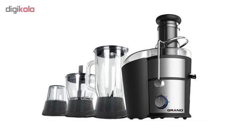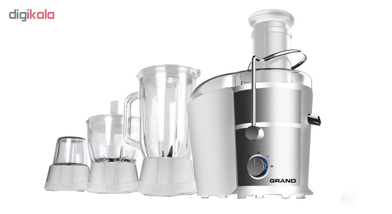 آبمیوهگیری گرند مدلGR-1030 با توان 800 وات دارای عملکرد عالی جهت آبگیری میوهها و سبزیجات مختلف میباشد. این آبمیوهگیری دارای بدنهای از جنس استیل مات میباشد که علاوه بر استحکام و مقاومت زیاد جلوهی خاصی به دستگاه بخشیده است. همچنین تمیز کردن این بدنهی استیل بسیار راحت است. بر روی بدنه انتخابگر سرعت تعبیه شده است که با چرخاندن آن میتوان سرعت مناسب را انتخاب نمود.علاوه بر اینها این دستگاه قابلیت آسیاب و خرد کردن مواد را نیز دارد و انواع مغزها، زعفران و مواد غذایی سفت رامی توان با آن آسیاب یا خرد کرد. گرد هم آمدن چهار کارایی در یک دستگاه و عرضهی آن توسط شرکتی مانند گرند خریداران را به سمت این مدل سوق میدهد. دهانهی ورود بزرگ به قطر 85 میلیمتر میباشد که امکان ورود میوهی درسته ( مثل یک سیب کامل ) را بدون نیاز به خرد کردن آن فراهم میکند. پس از قراردادن میوه در دهانه، با استفاده از فشاری همراه دستگاه میتوان میوه را به داخل دهانه هدایت کرد. جنس فیلتر آبمیوهگیری استیل ضد زنگ میباشد که در اثر استفاده و به مرور زمان زنگ نزده و فرسوده نمیگردد