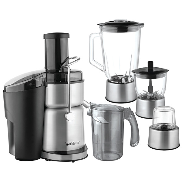 آبمیوهگیری مدل «GR-1080» ساخت شرکت «گرند» است. این دستگاه 4 کاره، علاوهبر آبمیوهگیری، یک مخلوط، آسیاب و خردکن نیز دارد و میتواند بخش زیادی از نیازهای آشپزخانه شما را رفع کند. بدنهی این دستگاه از جنس استیل است و مخزن تفالهی پلاستیکی به پشت آن اضافه میشود. دهانهی بزرگ این آبمیوهگیری اجازه میدهد که قطعات درشتتری از میوه را داخل آن بیاندازید. یک پارچ 1لیتری پلاستیکی همراه این آبمیوه گیر وجود دارد که معادل 4 تا 5 لیوان آبمیوه گنجایش دارد. این پارچ طوری طراحی شده است که مستقیما به خروجی دستگاه متصل میشود و چکه و ریزش آبمیوه را به صفر میرساند. مخلوطکن شیشهای این مجموعه نیز گنجایش 1.5لیتری دارد. موتور پرقدرت این دستگاه با قابلیت تنظیم سرعت فعالیت میکند. به کمک آبمیوه گیری گرند مدل GR-1080 با توان ۱۰۰۰ وات میتوانید آبمیوههای تازه و گوارا تهیه کنید و با استفاده از عملکردهای خردکن و مخلوطکن و آسیاب این دستگاه، راحتی بیشتری در انجام کارهای آشپزخانه تجربه کنید.