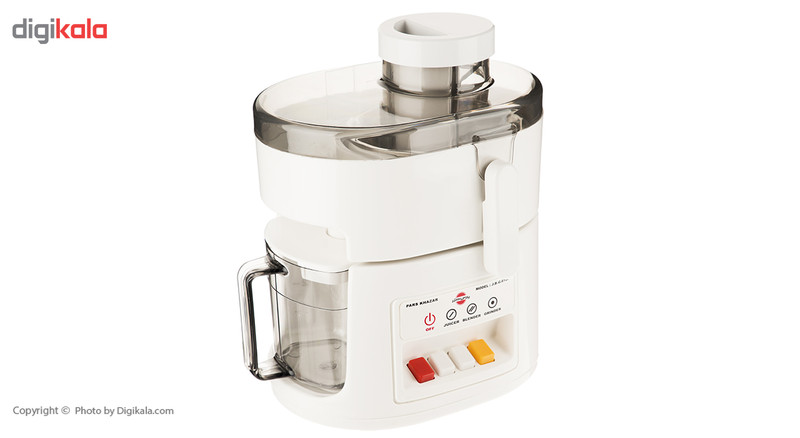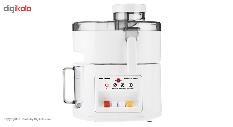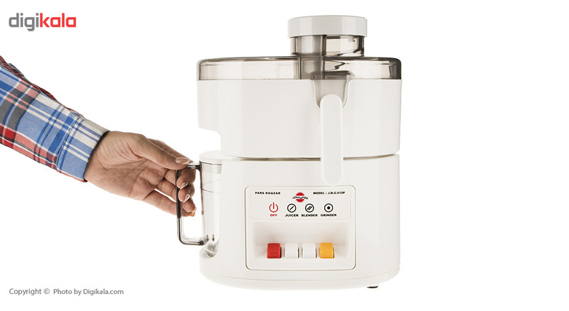 آبمیوهگیری پارس خزر مدل JBG-610P از دستگاههای چندکارهی این شرکت است که از محبوبیت بالایی برخوردار است. این دستگاه از یک موتور اصلی با قدرتی قابل توجه بهرهمند است و تجهیزات و ادوات مختلفی روی آن نصب شده که در مجموع باعث افزایش کارآیی آن میشوند. جنس بدنهی این محصول از پلاستیک است و این موضوع باعث کاهش وزن دستگاه میشود. پارچ مخلوط کن پلاستیکی و با گنجایش زیاد این دستگاه برای تهیه 4 تا 5 لیوان آبمیوه بسیار کارآمد خواهد بود. ناگفته نماند که جنس تیغههای آب میوه گیری پارس خزر مدل JBG-610P از استیل ضدزنگ است که تقریبا هر چیزی را خرد و مخلوط میکند. برای آبگیری سایر میوهها میتوان از بخش آبمیوهگیری که شامل تیغهها و توری است استفاده کرد. به این ترتیب، میوههای دارای تفاله مانند سیب و گلابی به راحتی آبگیری میشوند. آسیاب همراه مدل JBG-610P هم با دارا بودن تیغههای قدرتمند میتواند هر چیزی را خرد کرده و پودرهای متنوعی تهیه کند. برای مثال، برای تولید پودر زعفران، گردو، هل و مواردی از این قبیل دکمهای مجزا در نظر گرفته شده است و در بخش جلویی این دستگاه قرار دارند. پایههای ضد لغزش زیر این دستگاه مانع از هر گونه جابجایی و لرزش شده و خطری را متوجه کاربر یا دستگاه نمیکند. پارس خزر سالها است که با تولید لوازمخانگی برقی و عرضهی دستگاههای مختلف در بازار ایران نامی نیک از خود به جای گذاشته است و همچنان محصولات با کیفیتی را تولید میکند.