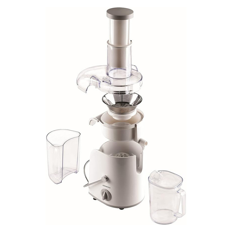 آب میوه گیری کنوود مدل JEP02 یکی از آبمیوهگیریهای تککارهی کاربردی و خوشساخت این شرکت است که در با کیفیت کاری خوبی تولید و به بازار عرضه شده است. بدنه آبمیوهگیری از پلاستیک مرغوب و باکیفیت ساخته شده و قسمت بالایی آن طراحی شفاف دارد. به این ترتیب میتوانید بدون نیاز به بازکردن در آبمیوهگیری بر روند کارکرد دستگاه نظارت داشته باشید. قسمت درپوش به کمک سوئیچ ایمنی به قسمت اصلی بدنه قفل میشود. این مدل از قابلیت تنظیم سرعت برخوردار است. سرعت کم مناسب برای آبگیری میوههای نرم مانند هندوانه، انگور، گوجهفرنگی و خیار بوده و سرعت زیاد برای آبگیری میوههای سفت مانند سیب، هویج و چغندر است. علاوه بر قابلیت کارکرد در دو سطح، آب میوه گیری کنوود مدل JEP02، دارای عملکرد پالس یا لحظهای هم هست. گنجایش مخزن آبمیوهگیری به 0.85 لیتر میرسد. پس از قراردادن میوه در دهانه، با استفاده از فشاری همراه دستگاه میتوان میوه را به داخل دهانه هدایت کرد. گفتنی است فیلتر آبمیوهگیری از جنس استیل ضدزنگ ساخته شده که در اثر استفاده و به مرور زمان زنگ نزده و فرسوده نمیشود. برخورداری از سیستم ضدچکه در قسمت خروجی آبمیوه و همچنین مخزن تفاله از دیگر مزایای این مدل است که به بهرهوری بیشتر دستگاه منجر شده است.