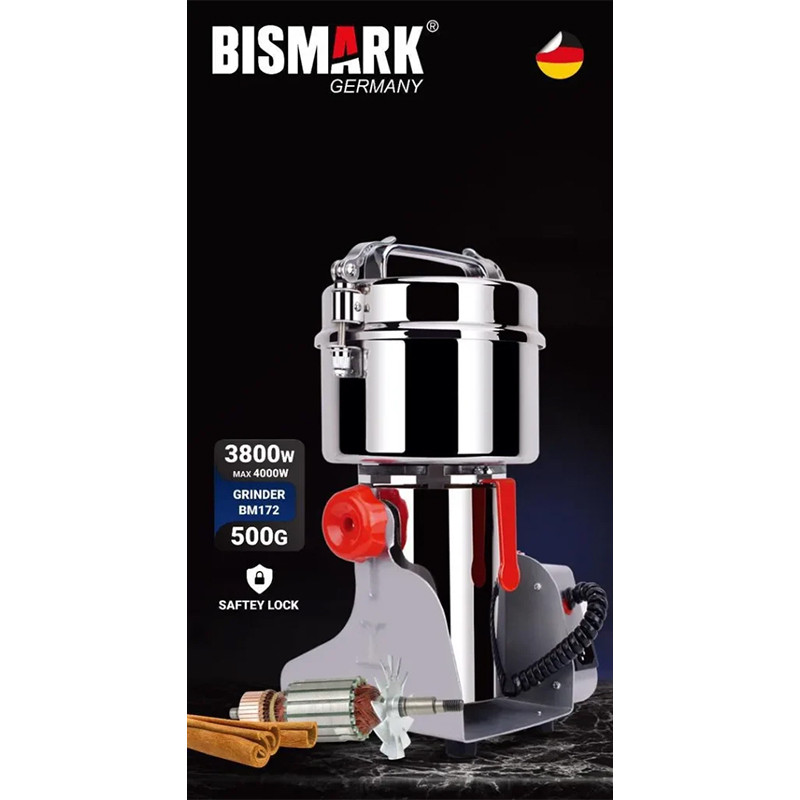 آسیاب گهوارهای بیسمارک مدل BM172 یک دستگاه صنعتی قدرتمند است که با مکانیزم حرکت گهوارهای، امکان ترکیب بهتر مواد را در حین آسیاب فراهم میکند. این ویژگی باعث میشود پودر نهایی کاملاً یکنواخت، نرم و بدون ذرات درشت باشد. این مدل یکی از قویترین موتورها را در میان آسیابهای موجود در بازار در اختیار دارد و قادر است انواع ادویهها، دارچین، غلات و مواد غذایی مختلف را در مدت زمانی بسیار کوتاه و با کیفیت عالی آسیاب کند.
