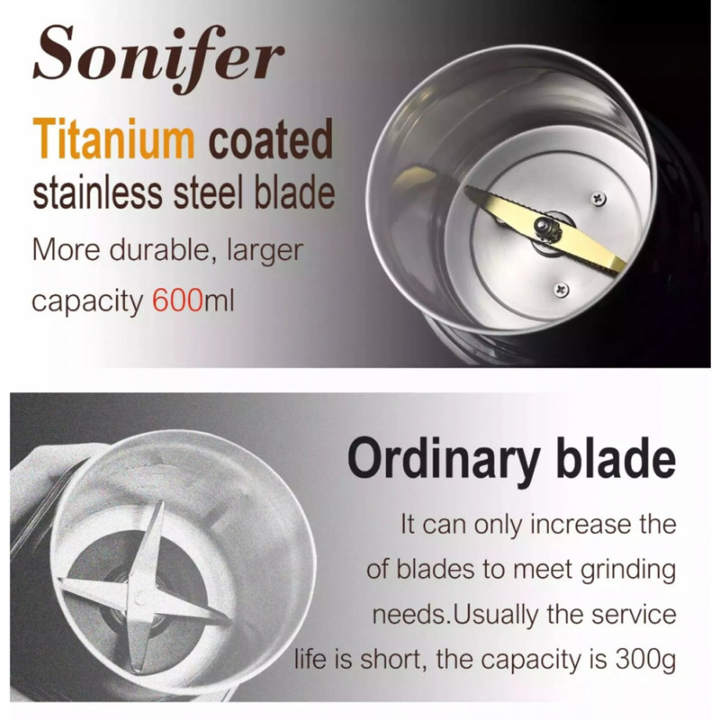 آسیاب قهوه سونیفر مدل SF-3543 یک دستگاه زیبا، کارآمد و با کیفیت است که هر کسی را شیفته ی خود می کند. با کمک این آسیاب می توانید با آن قهوه های خود را با حفظ طعم اصلی و بوی خوش آن آسیاب کنید. این آسیاب با توان مصرفی 300 وات واقعی و تیغه از جنس تیتانیوم ضد زنگ توانایی آسیاب کردن انواع قهوه، ادویه، دانه ها و آجیل ها را دارا می باشد. این آسیاب از مخزن بزرگ 600 میلی لیتری (200 گرم) برخوردار است که نسبت به سایر رقیبان از ظرفیت بسیار خوبی برخوردار است. از دیگر مزایای این آسیاب می توان به صدای بسیار کم و روان، طراحی زیبا و سیستم ایمنی پیشرفته آن اشاره کرد.