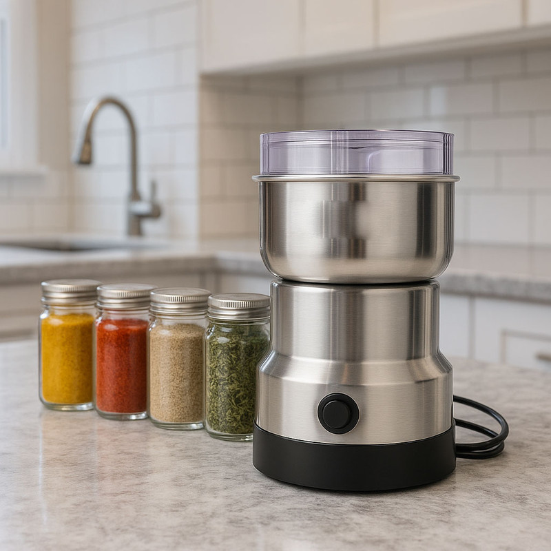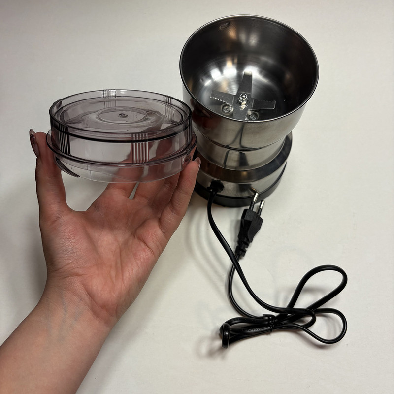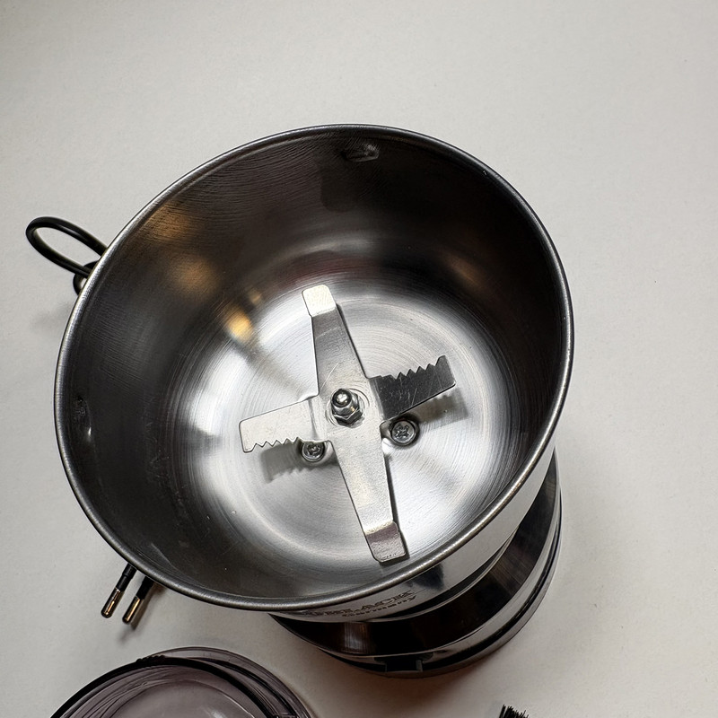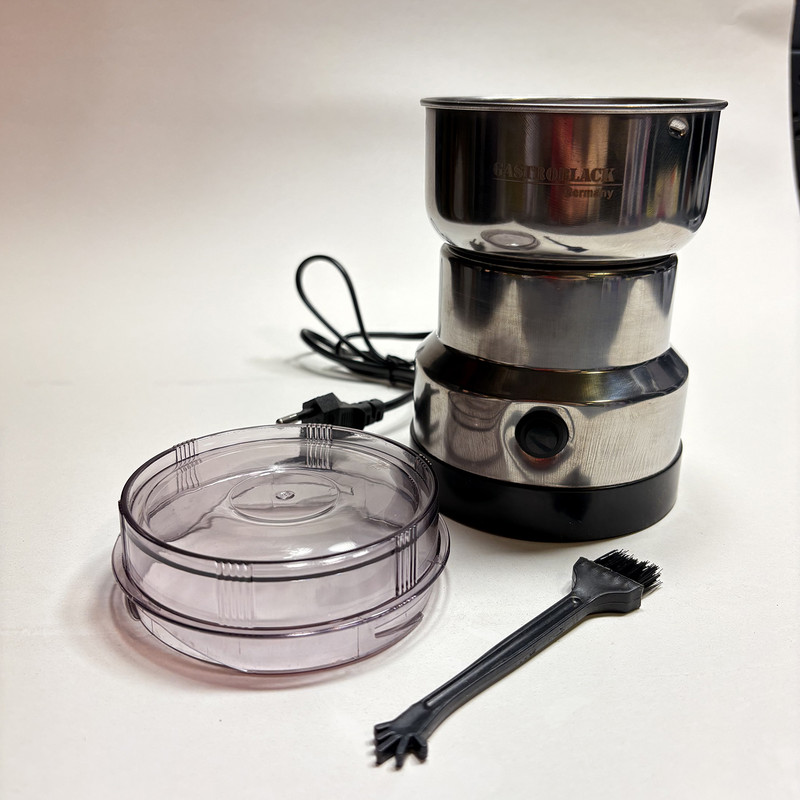 آسیاب برقی با توان 260 وات که بدنه استیل ضد زنگ دارد. 4 تیغه فلزی با کیفیت بالا کاملا مناسب آسیاب کردن قهوه، فلفل، نمک و سایر حبوبات می باشد. سری پلاستیکی شفاف برای دیدن مواد آسیاب شده بسیار کاربردی بوده. این دستگاه مناسب استفاده روزانه و خانگی است.