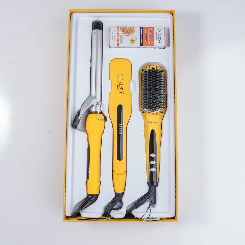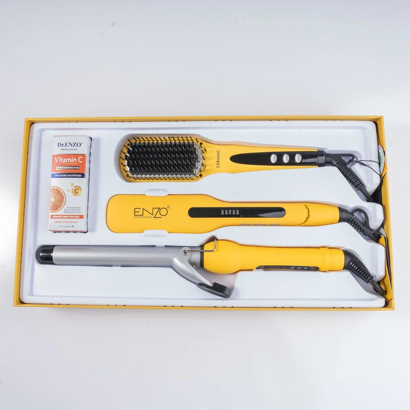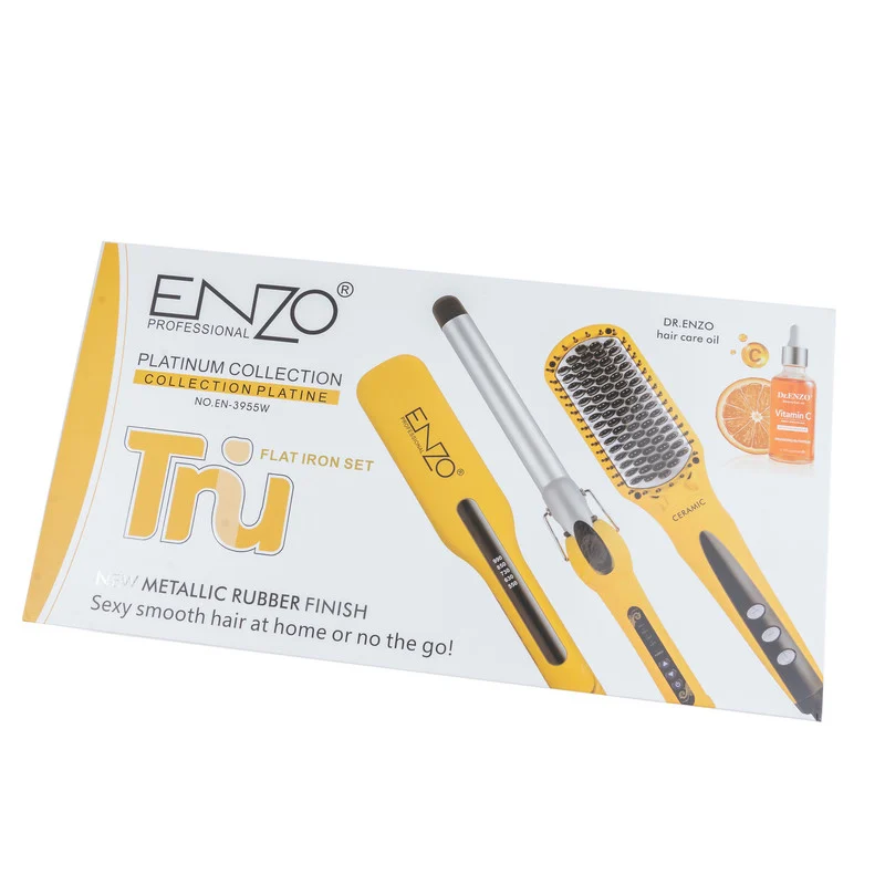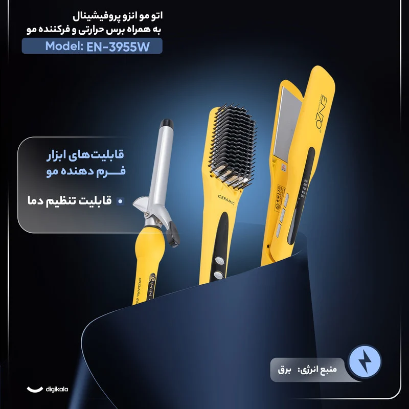 اتو مو انزو پروفیشینال مدل EN-3955W به همراه برس حرارتی و فرکننده مو