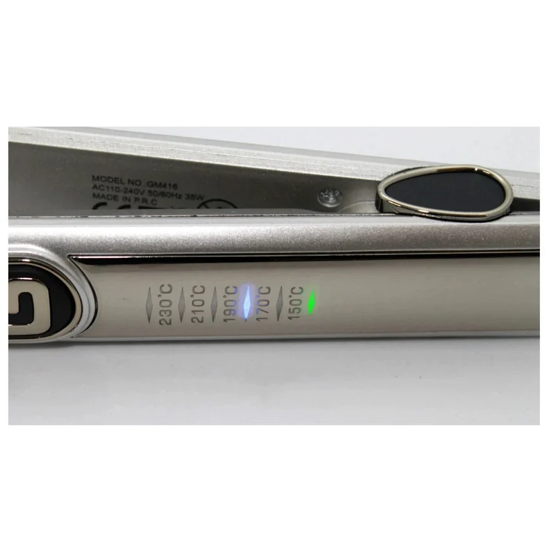 اتو مو جیمی مدل 416 دارای نمایشگر آنالوگ و صفحه سرامیکی و قفل صفحه سرامیک میباشد و از دمای 150 تا 230 درجه سانتی گراد حرارت دارد این دستگاه چرخش سیم 360 درجه دارد .