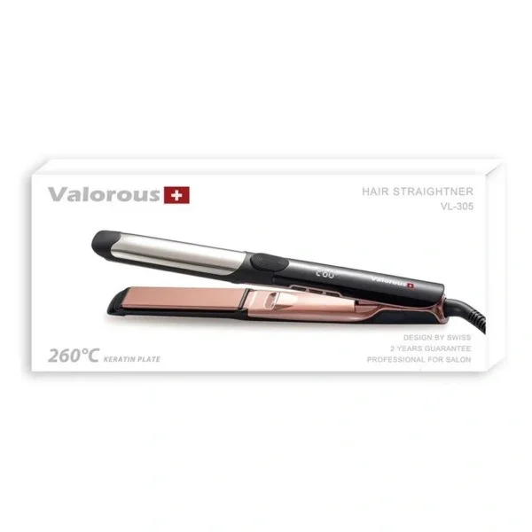 اتو موی حرفهای ولروس مدل VL-305 یکی از دستگاههای پیشرفته و حرفهای برای صاف کردن و حالتدهی به مو است که با بهرهگیری از تکنولوژیهای روز و طراحی ارگونومیک، انتخابی مناسب برای افرادی است که به دنبال نتایج صاف و درخشان در کمترین زمان ممکن هستند. این اتو مو با داشتن صفحات سرامیکی باکیفیت، توزیع یکنواخت حرارت را تضمین کرده و به جلوگیری از آسیبهای حرارتی به موها کمک میکند. قابلیت تنظیم دما و سیستم گرمایش سریع، از جمله ویژگیهایی است که این دستگاه را برای انواع مختلف مو، از نازک و حساس تا ضخیم و فر، مناسب میسازد. جنس صفحات این اتو مو از صفحه هایی با پوشش نانو تیتانیوم به همراه تکنولوژی فوق العاده ی تولید یون است.چراکه حرارت و گرما در سطح این صفحات به صورت یکنواخت و یکسان پخش خواهد شد.این محصول قابلیت تنظیم دما در درجات مختلف را دارا است که بیشترین دمای آن 260 درجه سانتی گراد است و از طریق سیستم گرمایشی سریع در عرض چند ثانیه به دمای مورد نظر خواهد رسید. اتصال کابل برق به دستگاه ، قابلیت چرخش ۳۶۰ درجه دارد و استفاده از آن را ساده تر کرده است.این محصول دارای طراحی ارگونومیک همچون وزن مناسب، خوش دست، ظاهری شیک بوده که کاملآ حرفه ای طراحی شده و نه تنها برا استفاده شخصی برا استفاده سالنی (آرایشگاه ها) بسیار مناسب و کاربردی هست.