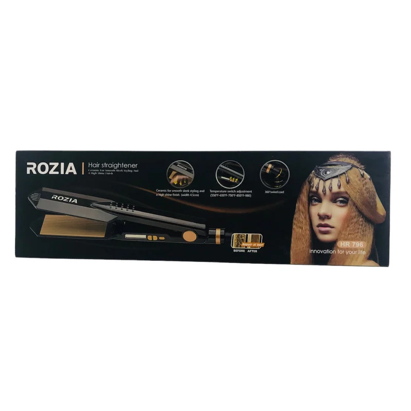 ویو روزیا 796 دارای صفحات از جنس سرامیک پیشرفته و تولید گرما با تکنلوژی PTC است که دارای بهترین جنس صفحه و تکنلوژی تولید گرما برای انتقال گرما و نچسبیدن به مو است. مساحت هر یک از صفحات 43 سانتیمتر مربع است که اندازه مناسب از مساحت است چون جزع صفحات پهن است مقدار مرغوبی از مو را در هر بار ویو میکند و در وقت صرفهجویی میکند. وزن 250 گرم است که وزن عالی برای استفاده طولانی مدت دارد و از خستگی زودهنگام جلوگیری میکند. دارای صفحه نمایشگر LED, سیم گردان 360 درجه برای استفاده راحتتر، حلقه اویختن و دکمه پاور و کاهش و افزایش دما در بازه 550 تا 980 درجه فارانهایت است.