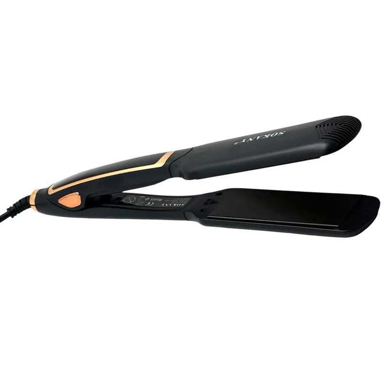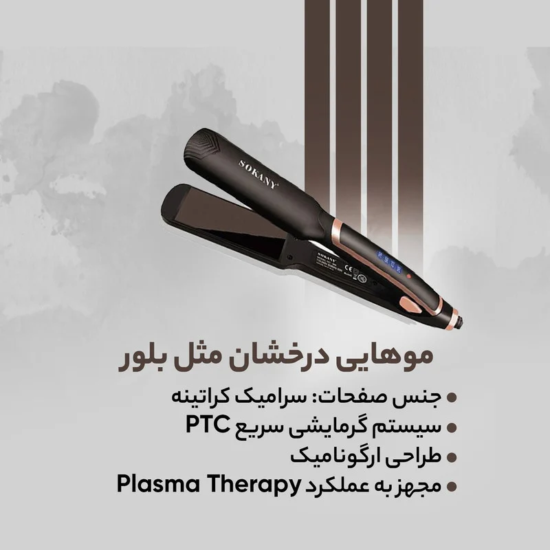 اتو موی سوکانی مدل 966 Plasma Therapy مورد تایید استاندارد اروپا CE می باشد که به دلیل متریال مرغوب به کار رفته یکی از بهترین اتوموهای موجود در بازار است. جنس صفحات این اتومو از سرامیک کراتینه از نوع نانو کراتین با لایه نانو پلاسما ساخته شده که از آسیب زدن به مو جلوگیری خواهد کرد و از آنجایی که مجهز به عملکرد Plasma Therapy است مانع از وز شدن مو می شود و همچنین موهای آسیب دیده را ترمیم میکند. به دلیل طراحی ارگونامیک این اتو مو به راحتی میتوان موها را کرلی کرد توجه داشته باشید به دلیل پهن بودن صفحات اتو مو زمان فر کردن فر پهن و بزرگ میشود.بیشینه ی دما در این اتو مو از 265 درجه تا 750 درجه ی فارنهایت می باشد که با توجه به جنس و نیاز موهایتان میتوانید روی دمای مناسب تنظیم کنید که از درجه حرارت بالا و کیفیت عالی برخوردار است به گونه ای که می توان از آن به صورت حرفه ای در آرایشگاه ها استفاده کرد. و همچنین مجهز به سیستم گرمایشی سریع PTC هست لذا به سرعت در عرض 30 ثانیه به دمای مورد نظر خواهد رسید روی بدنه دستگاه یک نمایشگر LED کار گذاشته شده است که شما رو از دمای انتخابی مطلع خواهد کرد از طرفی مجهز بودن به سیستم نانو سیلور از دیگر قابلیتهای مهم دستگاه بوده که ضد باكتري، ويروس و قارچ است