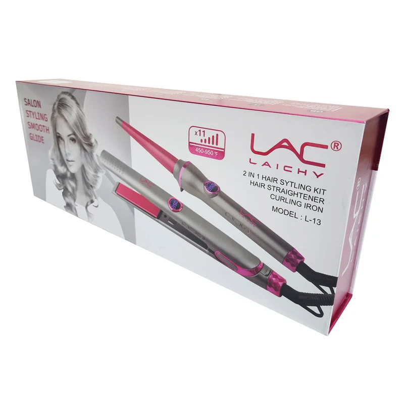 این محصول یک ست شامل دستگاه اتو مو و فرکننده مو می باشد. اتو موی این ست دارای صفحات با کیفیت از جنس سرامیک است که به سرعت و کمتر از 30 ثانیه داغ و آماده به کار می شود. دمای این اتو مو را می توانید از 450 تا 950 درجه فارنهایت به کمک صفحه نمایشگر تنظیم کنید و با داشتن گستره دمای بالا، با هر جنس مو می توانید دمای مختص به خود را انتخاب کنید. سیم بلند با قابلیت چرخش 360 درجه و همچنین دکمه قفل صفحه از مزایای دیگر این اتوموست. دستگاه فرکننده نیز دارای میله سرامیکیست و حرارت به سرعت و به طور یکنواخت در سرتاسر میله جریان پیدا خواهد کرد. دمای این فرکننده را می توانید از 450 تا 950 درجه فارنهایت با کمک نمایشگر تنظیم کنید. قطر میله این فرکننده در قسمت باریک 13 و در قسمت پهن 25 میلی متر است. چرخش 360 درجه خروجی سیم و پایه نصب شده بر روی بدنه برای جلوگیری از انتقال حرارت از امکانات دیگر این دستگاه است. این ست حرفه ای را در یک بسته بندی زیبا دریافت خواهید کرد.