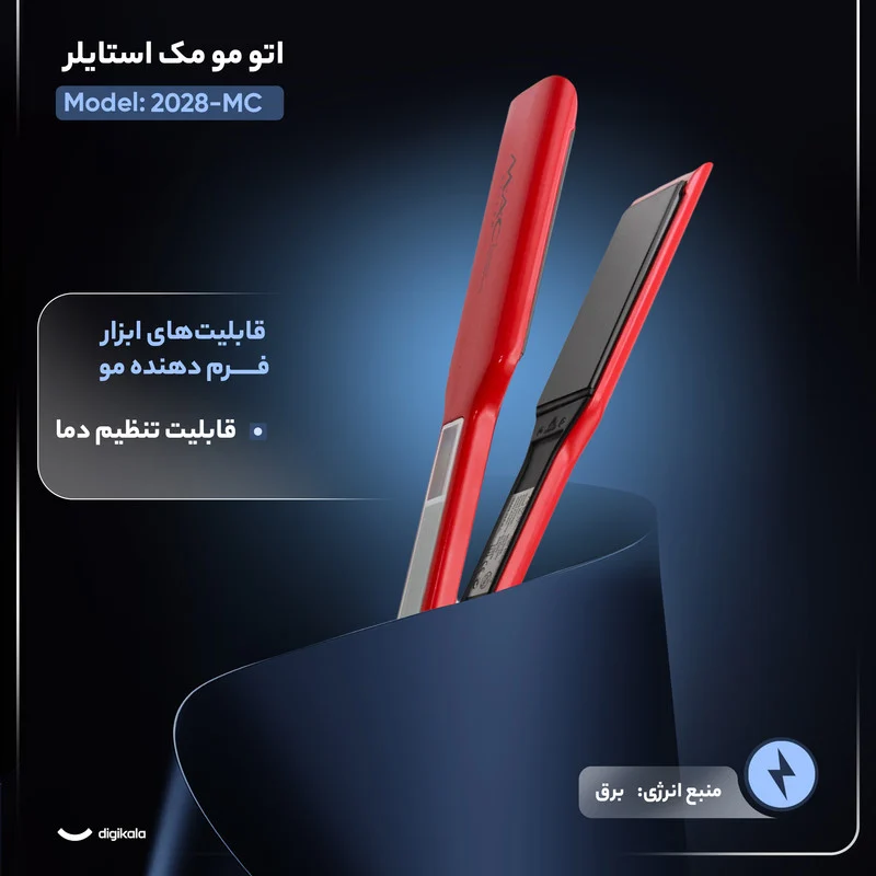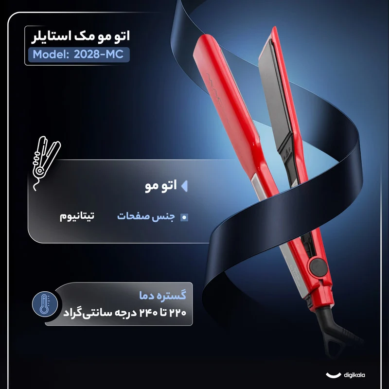صفحات تیتانیومی با پوشش نانو و عرض حدود ۴.۵ سانتیمتر، گرما را بهصورت یکنواخت پخش میکنند و سطحی صاف و مقاوم در برابر حرارت ایجاد میکنند تا مو بدون آسیب صاف شود. این مدل به صفحهنمایش لمسی هوشمند مجهز است و با قفل اتوماتیک صفحه، امنیت و سهولت استفاده را افزایش میدهد؛ قفل تنها با لمس انگشت باز میشود. شش حالت تنظیم دما از ۱۲۰ تا ۲۳۰ درجه سانتیگراد برای انواع بافت مو در نظر گرفته شده و دستگاه در کمتر از ۳۰ ثانیه به دمای کاری میرسد. خاموشی خودکار پس از ۴۵ دقیقه از روشن ماندن ناخواسته جلوگیری میکند و کابل دو متری چرخان ۳۶۰ درجه، آزادی عمل در هنگام کار را فراهم میسازد. در کنار این ویژگیها، جعبه نگهداری مقاوم نیز برای حمل و محافظت از دستگاه در نظر گرفته شده است. در مجموع، MC-2028 انتخابی هوشمند برای افرادی است که به دنبال صاف شدن سریع، ایمن و حرفهای موها هستند.