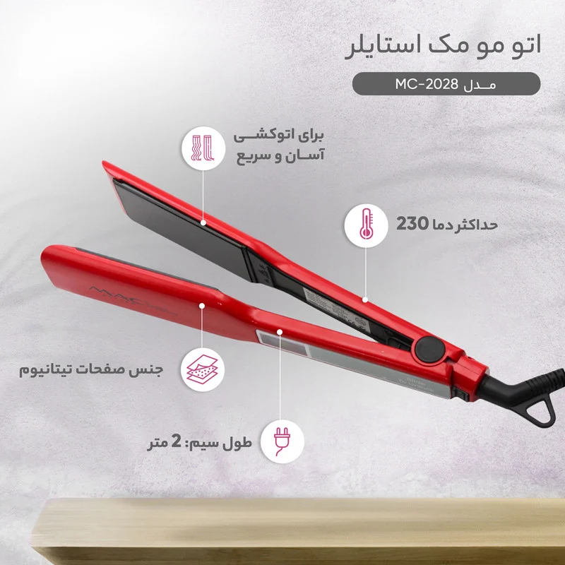 اتو مو مک استایلر مدل MC-2028، دستگاهی حرفهای برای صاف کردن، حالتدهی و انجام درمانهای کراتینه مو است که طراحی مدرن و عملکرد دقیق را در کنار دوام بالا ارائه میدهد.