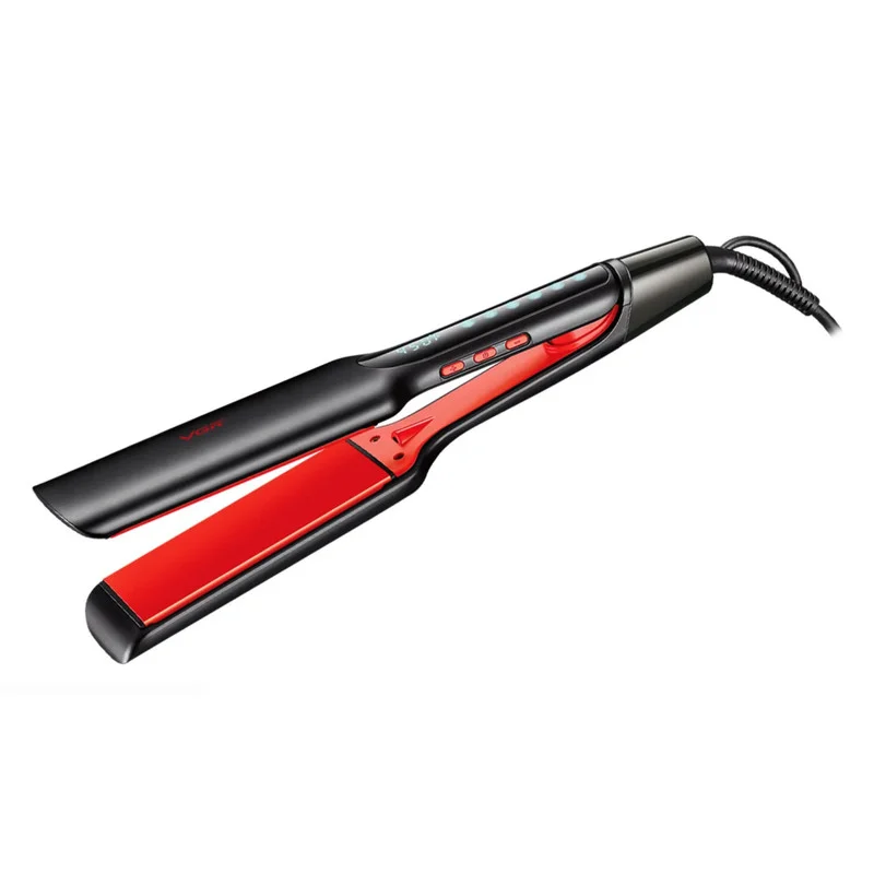 اتو مو وی جی ار مدل V-521 دارای صفحه ی پهن 120 میلی متری و دارای نمایشگر دیجیتال و جنس صفحه سرامیکی میباشد طول سیم ۲ متر است و دمای آن از ۲۱۰ تا ۴۵۰ فارنهایت میباشد و در عرض ۶۰ ثانیه قابل استفاده میباشد و سیم ۳۶۰ درجه ای میباشد .