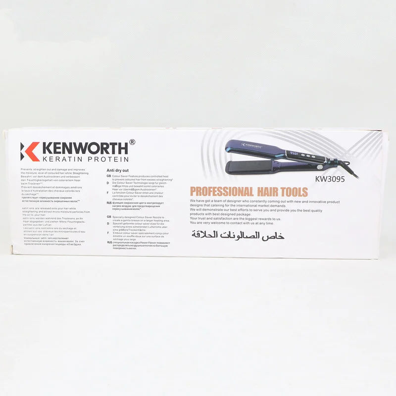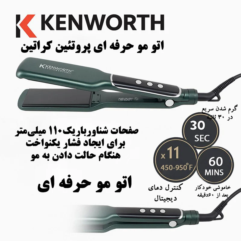 اتو مو حرفهای KENWORTH مدل KW3095 با تکنولوژی کراتین پروتئین، یکی از بهترین ابزارهای حالتدهی مو برای استفاده شخصی و حرفهای در سالنهای زیبایی است. این اتو مو با داشتن صفحات شناور ۱۱۰ میلیمتری و طراحی باریک، فشار یکنواختی روی مو وارد میکند و از آسیب به ساقه مو جلوگیری میکند. یکی از مزایای اصلی KW3095 کنترل دمای دیجیتال آن است که در ۱۱ سطح مختلف از ۴۵۰ تا ۹۵۰ درجه فارنهایت قابل تنظیم است و آن را برای انواع مختلف مو، از نازک و حساس تا ضخیم و مقاوم، مناسب میسازد. عملکرد گرمایش سریع در ۳۰ ثانیه، استفاده سریع و آسان را ممکن میسازد، در حالی که سیستم خاموشی خودکار پس از ۶۰ دقیقه ایمنی بیشتری فراهم میکند. کابل چرخان ۲ متری نیز آزادی حرکت بیشتری در هنگام استفاده فراهم کرده و تجربهای حرفهای در خانه یا سالن ایجاد میکند.این دستگاه از خشک شدن بیش از حد مو جلوگیری کرده و درخشندگی و لطافت طبیعی موها را حفظ میکند. اتو مو KENWORTH KW3095 انتخابی هوشمندانه برای افرادی است که به دنبال ترکیبی از کارایی، کیفیت و سلامت مو هستند.