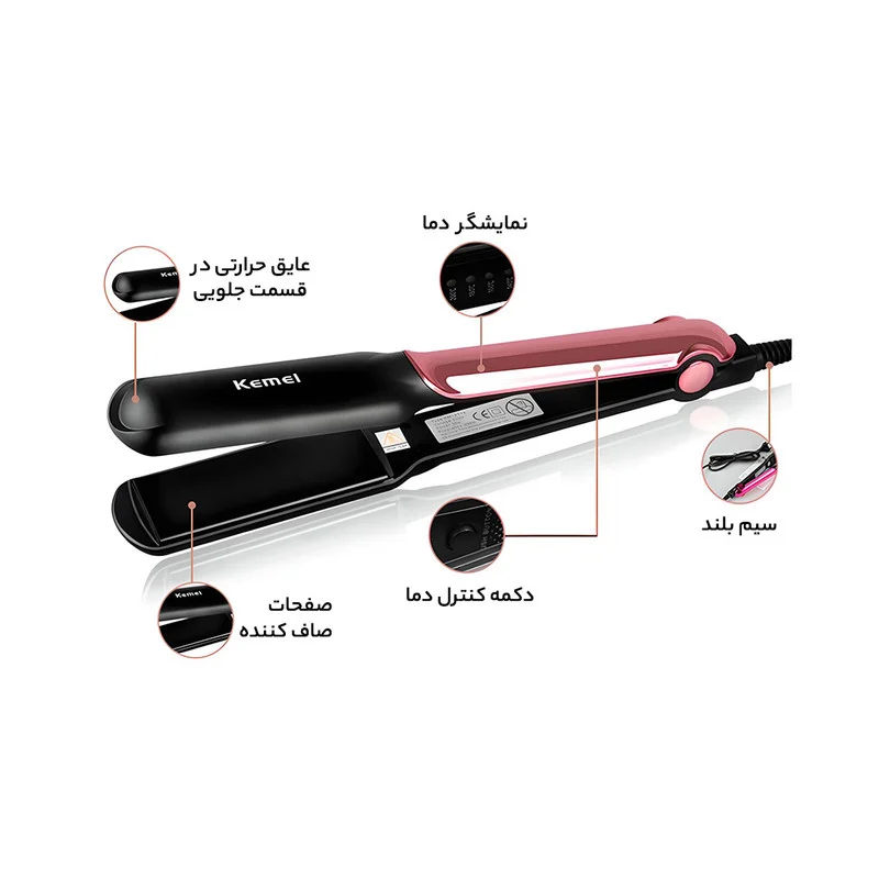 اتو مو کیمی مدل KM-2113، دستگاهی حرفه‌ای برای صاف کردن و حالت‌دهی مو است که با فناوری نانو سیلور و صفحات سرامیک پیشرفته، سلامت بافت مو را حفظ کرده و از گره خوردن آن جلوگیری می‌کند. این اتو با ابعاد بدنه ۲۷۰ × ۷۰ × ۴۵ میلی‌متر و وزن ۵۵۰ گرم، طراحی مناسبی برای استفاده طولانی‌مدت دارد و سیم گردان ۳۶۰ درجه با طول ۱.۸ متر، آزادی حرکت کاربر در فضاهای مختلف را تضمین می‌کند. طول صفحه حرارتی ۱۱۰ میلی‌متر، پوشش یکنواخت و لغزندگی مناسب برای انواع بافت مو فراهم می‌کند و تجربه‌ای صاف و نرم ارائه می‌دهد. در بخش عملکرد، KM-2113 امکان تنظیم دما در چهار سطح بین ۱۴۰ تا ۲۰۰ درجه سانتی‌گراد را دارد و نمایشگر دما، دمای دقیق را به کاربر نشان می‌دهد. سیستم کنترل حرارت ثبات گرما را تضمین کرده و از داغ شدن بیش از حد جلوگیری می‌کند؛ علاوه بر این، گرمایش سریع تنها در ۳۰ ثانیه، آماده‌به‌کار شدن دستگاه را سریع و کارآمد می‌کند. از نظر ایمنی، خاموشی خودکار پس از ۳۰ دقیقه و خاموشی اضطراری در صورت افزایش بیش از حد دما، استفاده مطمئن و بدون نگرانی را ممکن می‌سازد. در مجموع، اتو مو کیمی KM-2113 با ترکیب طراحی ارگونومیک، فناوری پیشرفته و امکانات ایمنی، گزینه‌ای مناسب برای دستیابی به موهایی صاف، درخشان و با دوام برای استفاده روزمره است.