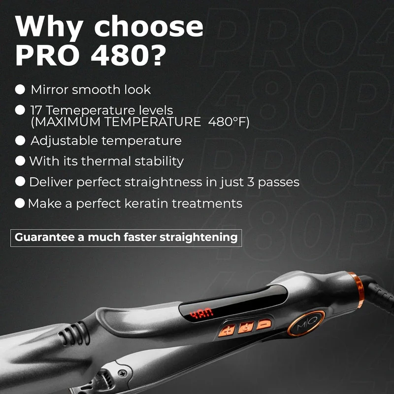 صفحات اتو موی ام کیو مدل پرو 480 توربو از تیتانیوم بسیار با کیفیت ساخته شده است که با روکش سنگ تورمالین پوشش داده شده اند.