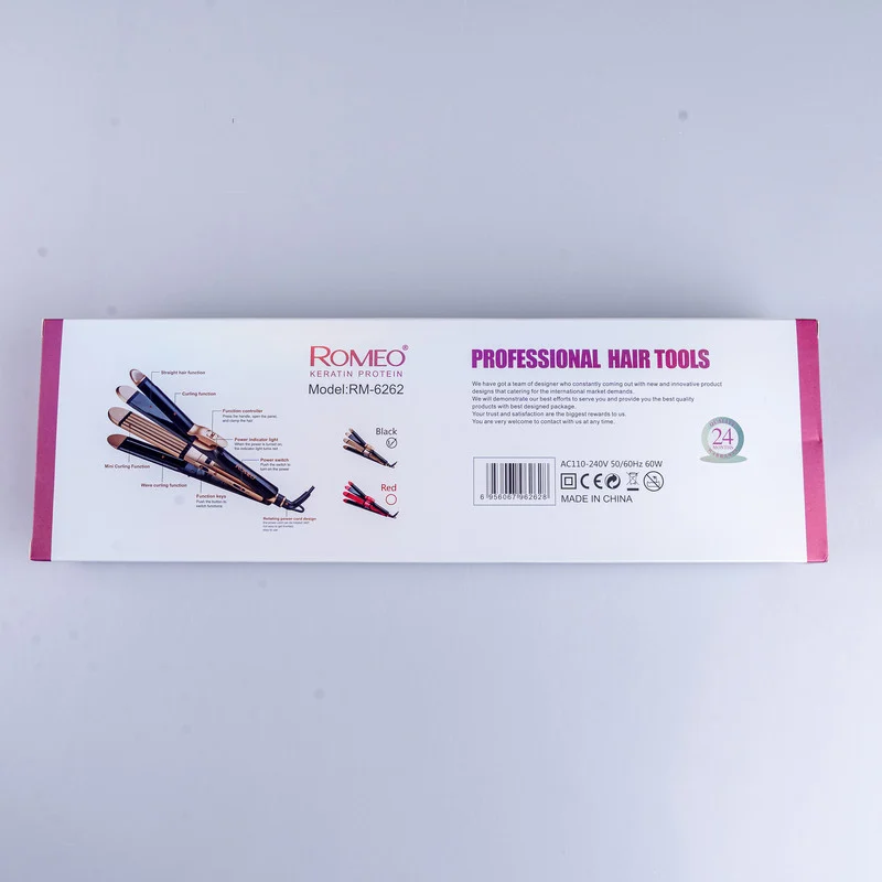 یکی از برجستهترین ویژگیهای این دستگاه، قابلیت عملکرد چهارگانه آن است. با استفاده از یک سیستم کنترلی ساده، میتوانید بین چهار مدل مختلف حالتدهی جابهجا شوید: صاف کردن مو برای داشتن ظاهری مرتب و براق، فر حلقهای کلاسیک برای ایجاد فرهای منظم و درخشان، فر موجدار S شکل که ظاهری طبیعی، رها و خاص به مو میدهد و حالت فرمینی یا فر زیگزاگی که موجهای ریز و حجیم با استایلی منحصر به فرد ایجاد میکند. این تنوع بالا باعث شده تا RM-6262 انتخابی ایدهآل برای استفاده روزمره، مراسم خاص، عکاسی یا آرایش حرفهای باشد.
