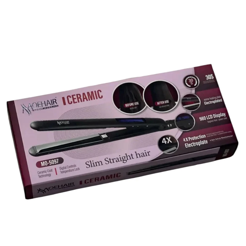 صفحات سرامیکی پیشرفته: صفحات سرامیکی اتو مو موهایر مدل MO-5097 با توزیع یکنواخت گرما، موها را به سرعت صاف و بدون آسیب حرارتی میکند. این ویژگی برای انواع مو از جمله موهای نازک، معمولی و ضخیم ایدهآل است.
