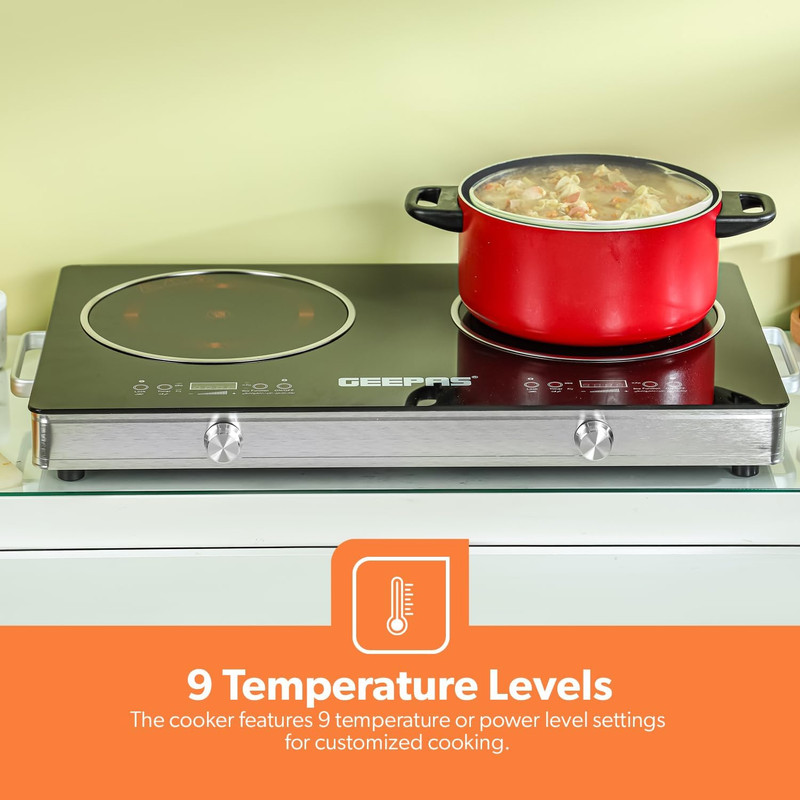 اجاق برقی GIC6131S جیپاس با 3200 وات قدرت و کنترل آسان از 9 تنظیم حرارتی با کنترل ترموستاتیک برای پخت راحت انواع غذاها مانند سس های تند، تخم مرغ های همزده، پنیر کبابی، سوپ، پاستا، سبزیجات و موارد دیگر استفاده می کند. همچنین می توانید از آن به عنوان یک شعلهی اضافی برای نگهداری مواد غذایی استفاده کنید.