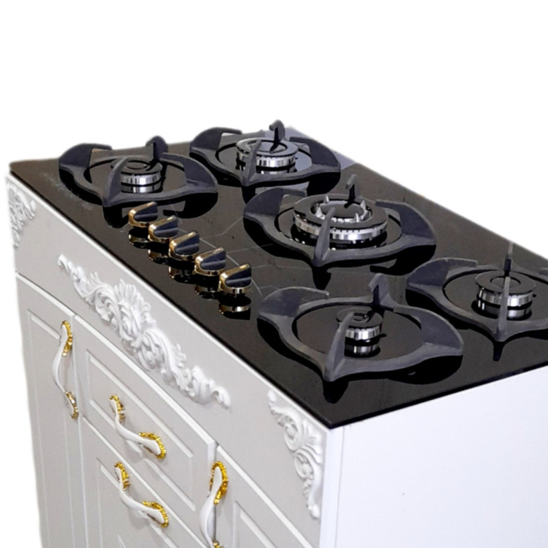 | سایر ویژگیها | اجاق گاز کابینتی رویه شیشه سکوریت محکم فندک وجرقه زن برقی سرخود وپایه تنظیم ارتفاع شبکه چدنی محکم وسنگین مجوز رسمی کشوری |