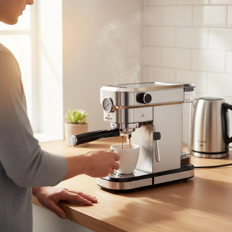 شرکت مباشی متخصص تولید انواع دستگاه های اسپرسوساز خانگی محصول جدید، قدرتمند و زیبای خود را به نام اسپرسوساز مباشی مدل ECM2016 با بدنه استیل ضدزنگ به بازار عرضه کرده است. از جمله ویژگیهای این محصول داشتن موتور با فشار 20 بار و ظرفیت 1350 وات میباشد که باعث شده قهوه خروجی دارای کرمای با غلظت عالی باشد. و همچنین دارای بخار خروجی فوق العاده قوی میباشد اسپرسوسازمباشی مدل ECM2016 مجهز به پیچ تنظیم بخار میباشد که امکان تهیه فوم شیر با غلظت های متفاوت را با تنظیم بخار خروجی فراهم می آورد.از جمله ویژگیهای این دستگاه داشتن نشانگر عقربه ای دما میباشد که هم به دستگاه زیبایی خاصی داده و هم اینکه کاربر راحت تر میتواند با دستگاه کار کند اسپرسوساز مباشی مدل ECM2016 مجهز به صفحه گرم نگهداره فنجان است که به شما کمک میکند تعداد بیشتری فنجان قهوه را گرم نکه دارید و از نوشیدن یک فنجان اسپرسو خوب لذت ببرید. حجم مخزن دستگاه 1.1 لیتر و از تلق شفاف در ساخت آن جهت مشاهده میزان آب داخل مخزن استفاده شده است.از جمله ویژگیهای دیگر دستگاه بویلر ساخته شده از آلیاژ آلومینیوم، سینی چکه گیر با قابلیت جدا شدن جهت تمیز کاری آسان، نازل بخار با قابلیت چرخش جهت فوم گیری آسان همچنین سر نازل با امکان جدا شدن جهت شستشو، سیستم کنترل فشار و حرارت و صفحه گرم نگه داشتن فنجان می باشد. دستگاه اسپرسو ساز مباشی مدل ECM2016 مناسب برای مصارف خانگی ، محل کار ، سوپرمارکت ها، کافی شاپ های کوچک و مکانهای مشابه است.جهت داشتن قهوه اسپرسوی معطر و خالص حتما از آب تصفیه شده که فاقد املاح اضافی میباشد استفاده نمایید زیرا به مرور زمان املاح منافذ دستگاه را گرفته و در کیفیت قهوه و بخار خروجی تاثیر بسزایی دارد. جهت امنیت بالا دستگاه مجهز به سیستم قطع خودکار میباشد که در صورت عدم کار با دستگهاه بعد از 29 دقیقه دستگاه خودبخود خاموش میشود.اقلام همراه این دستگاه فیلتر تک اسکوپ و دو اسکوپ، تمپر، دسته هد گروپ، دفترچه راهنما میباشد.جهت داشتن قهوه اسپرسوی پرخامه و با کیفیت حتما از قهوه با آسیاب متوسط استفاده کنید.