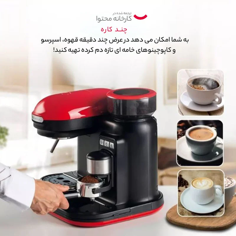 برند آریته زیرگروه شرکت دلونگی ایتالیا است. محصولات این برند از کیفیت بسیار بالایی برخوردار میباشند. دستگاه اسپرسوی آریته مدل 1318 از سری Modern شرکت آریته میباشد. سری Modern شرکت آریته دارای طراحی بسیار چشمگیر و طراحی صنعتی مدرن میباشد.مشخصه این سری از محصولات شرکت آریته رنگ قرمز آن است که در کنار طرح بی عیب و نقص محصولات ، بسیار دلربایی میکند.دستگاه اسپرسو 1318 را میتوان یک دستگاه صنعتی در ابعاد کوچک نامید. پمپ بسیار پرقدرت و 15بار ایتالیایی این دستگاه فوم بینظیری برای اسپرسوی شما رقم میزند.یکی از نکات مثبت این دستگاه دلربا که آن را تبدیل به غول بی بدیل دنیای قهوه میکند، آسیاب آن است که امکان استفاده از دانه قهوه ی آسیاب نشده را برای هر فنجان اسپرسو به شما میدهد تا شما را در عطر و طعم اصیل قهوه غرق کند.تنها با فشردن یک کلید شیر خود را برای کاپوچینو و ماکیاتو آماده کنید و تنها با فشردن یک کلید دانه های تازه قهوه را آسیاب کنید و تنها با فشردن یک کلید از اسپرسوی ناب خویش لذت ببرید. فاصله بین شما و دنیایی از عطر و طعم تنها فشردن یک کلید است.