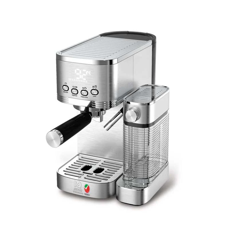 اسپرسوساز بامخزن شیر آی کیو مدل IJ_509EM با قدرت پمپ 28 بار و خامه دهی فوق العاده ضد چکه / نمایشگر دیجیتال / بدنه استیل / دارای قطع کن خودکار / سوییچ ایمنی / خامه دهی 85% / مخزن شیر مجزا / مخزن اب قایل جابه جایی