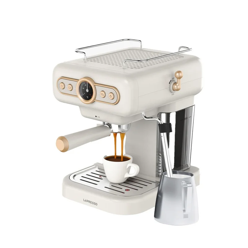 دستگاه اسپرسوساز با گیج و بخار شیر، اسپرسویی با کیفیت باریستا را برای علاقه مندان به قهوه در آسایش خانه فراهم می کند. این دستگاه دارای یک گیج دیگ است که سطوح فشار را برای اطمینان از دم کردن بهینه و یک دکمه کنترل بخار برای ایجاد بافت های کف دار شیر کنترل می کند. یک بشقاب گرم کننده فنجان، فنجان ها را در دمای نوشیدنی ایده آل نگه می دارد. این دستگاه دارای یک سینی چکه قابل شستشو و یک پمپ قدرتمند 15 باری است که عکسهای غنی از مخزن آب 1.2 لیتری خود را ارائه میدهد. با توان 950 وات و مجهز به سیم برق سه شاخه بریتانیا، راحتی و کارایی را ارائه می دهد. لوازم جانبی شامل فیلترهای یک و دو فنجانی، یک پورتافیلتر دسته دار و یک ابزار چند منظوره ترکیبی از اسکوپ قهوه با یک دستکاری است. دستگاه اسپرسوساز LePresso Retro برای کسانی که به دنبال دستگاهی قابل اعتماد و با کاربری آسان با ویژگی های ضروری برای یک تجربه لذت بخش قهوه هستند، مناسب است.