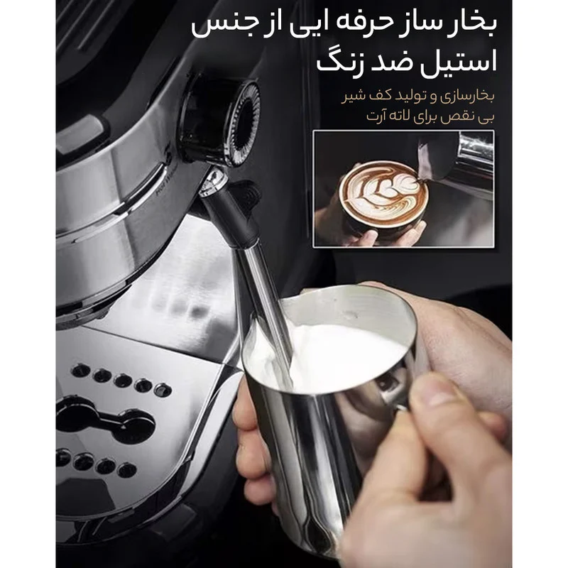 • امکانات اسپرسوساز: تولید کف شیر، سیستم گرم کردن فنجان