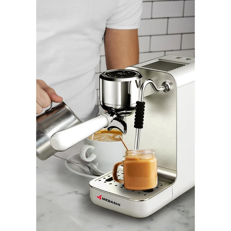 تمپر قهوه، تولید کف شیر، خروجی آب داغ، سیستم کاپوچینو ساز، سیستم گرم کردن فنجان، سینی چکه گیر، نازل بخار