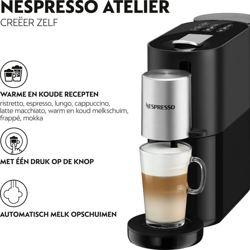 آماده سازی آسان چند نوع قهوه از جمله اسپرسو, لونگو, لاته,کاپوچینو, ریستریتو تنها با لمس دکمه و همچنین دارای سیستم فوم ساز یا کف ساز شیر سرد یا گرم که به شما امکان تهیه انواع قهوه با دستور های مختلف را می دهد .همچنین امکان رسوب زدایی نیم اتوماتیک و سیستم هشدار دیسکیل این دستگاه نیز جزو ویژگی های جدید افزوده شده به سری های قبلی نسپرسو می باشد .