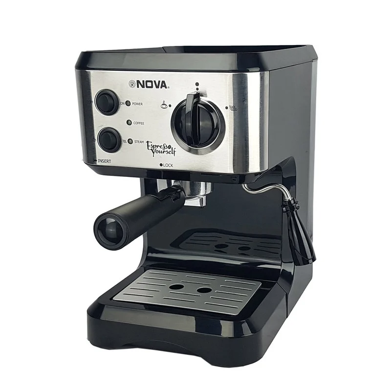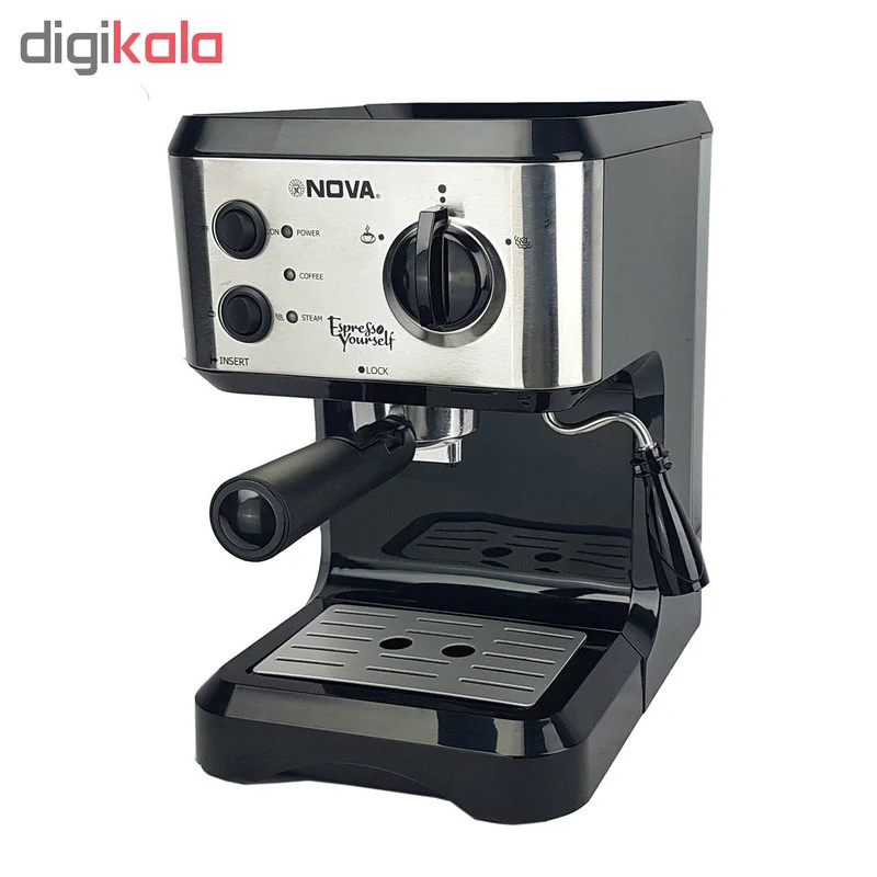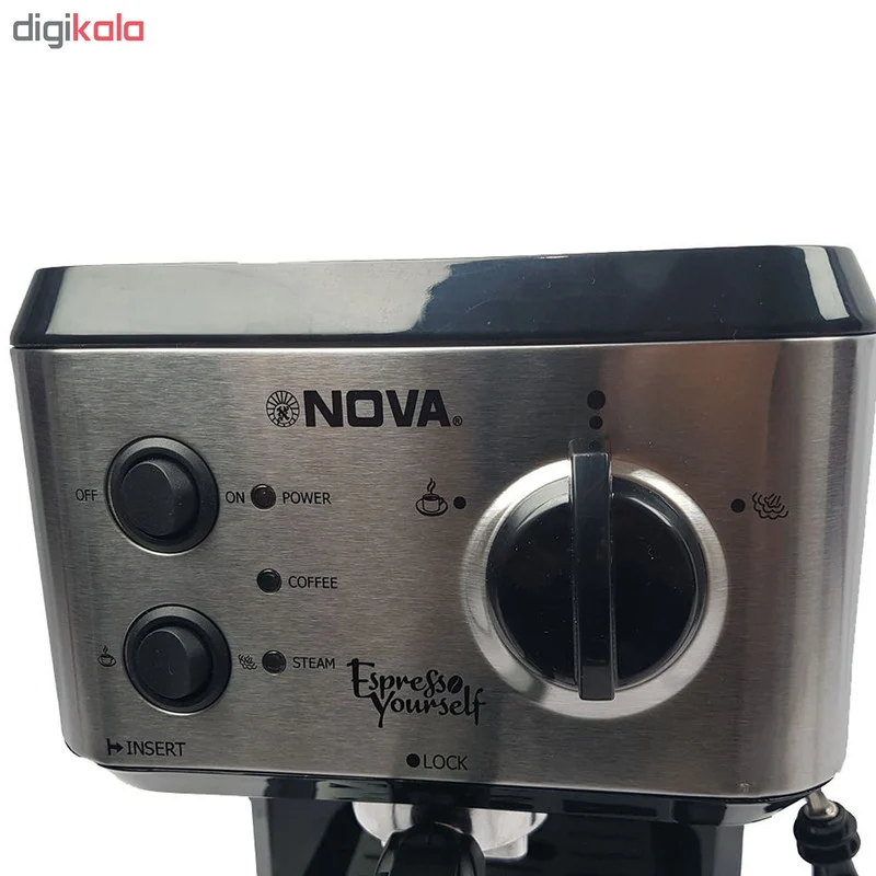 اسپرسوساز نوا 146 NOVA با طراحی عالی یک دستگاه پر قدرت و کاملاً کاربردی برای مصارف خانگی و یا کافه های کوچک است.اسپرسو ساز نوا 146با قدرت بخار 15 بار و اجزا داخلی و لوله های بخار از فولاد ضد زنگ و قدرت 1050وات می باشد که یک قهوه ساز و اسپرسوساز قوی محسوب می شود.اسپرسو خارج شده از این دستگاه با کرمای عالی نشان دهنده ی قدرت بسیار خوب نوا 146است.نوا 146مجهز به نازل تولید بخار و آب جوش است که از آن برای تهیه کاپوچینو و کف شیر و انواع نوشیدنیهای گرم استفاده میشود.در مدل نوا 146نازل بخار قابل چرخش طراحی شده است که استفاده از آن را ساده کرده است. همچنین نوا 146مجهز به صفحه ی گرم نگهداره ی فنجان بزرگتری نسبت به نوا 139 است که به شما کمک میکند تعداد بیشتری فنجان قهوه را پیش گرم کنید و از نوشیدن یک فنجان اسپرسو خوب لذت ببرید.بدنه نوا 146از استیل براق ضد زنگ ساخته شده که زیبایی آن را دو چندان کرده است.در این دستگاه از بویلر و پمپ آب قویتری نسبت به مدلهای 139 و 140 استفاده شده است که بر روی درجه حرارت قهوه خروجی و همچنین بخار آب تاثیر گذار است