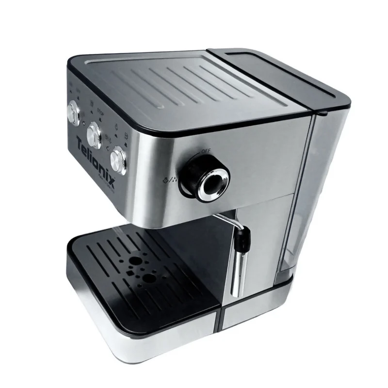 اسپرسوساز Telionix 5103 با پمپ ۲۰ بار و توان ۱۲۰۰ وات برای کسانی طراحی شده که به دنبال قهوه باکیفیت خانگی هستند. این دستگاه با بدنه مقاوم از استیل، مخزن آب جداشدنی و نازل بخار، امکان تهیه اسپرسوی غلیظ همراه با کِرِما را فراهم می‌کند. قابلیت تنظیم بخار و سینی چکه‌گیر قابل‌جداشدن کاربری و نگهداری دستگاه را ساده کرده است. اگر دنبال دستگاهی با قیمت مناسب، نگهداری آسان و عملکرد قابل‌اطمینان برای استفاده روزانه هستید، Telionix 5103 یکی از گزینه‌های منطقی بازار است.