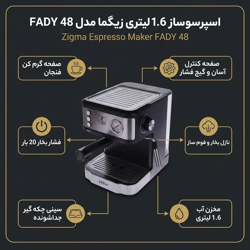 اسپرسو ساز 1.6 لیتری زیگما مدل FADY 48