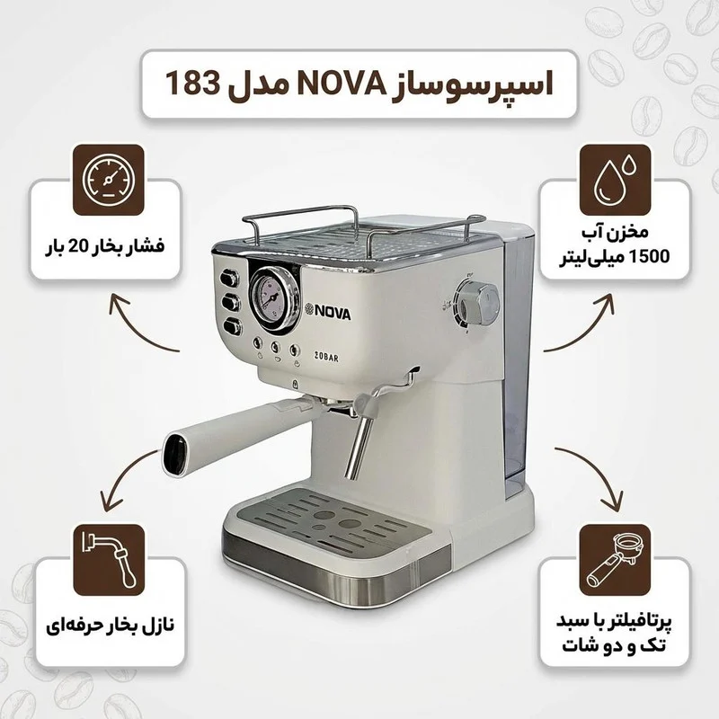 اسپرسو ساز 1500 میلیلیتر نوا مدل 183