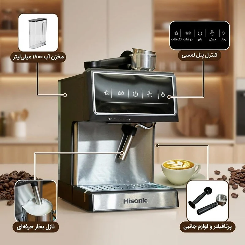 امروزه نسل جدید لوازم خانگی برقی با تکنولوژی تمام لمسی جهت سهولت در استفاده وارد بازار گردیده ،اسپرسوساز HSE-880 یکی از محصولات با کیفیت برند Hisonic از نسل جدید اسپرسوسازهای تمام لمسی