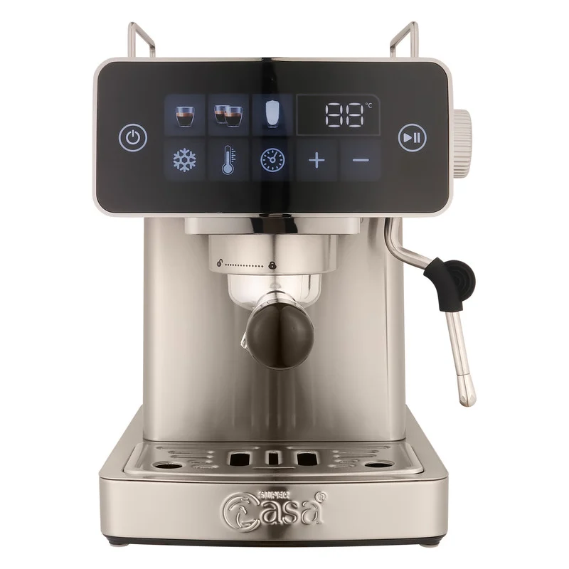 محصول جدید از برند سوپر کاسا اسپرسو ساز حرفه ای این شرکت میباشد، اسپرسو ساز مدل CA-231 با طراحی جدید و به روز یکی از دستگاه های پرفروش این برند در بازار میباشد یک دستگاه کاملا حرفه ای که با بهرگیری از پمپ بخار ۲۰ بار از معتبرترین شرکت پمپ سازی دنیا یعنی شرکت ULKA ایتالیا این دستگاه را در رده بهترین اسپرسو سازهای بازار قرار داده است، طراحی تماما استیل مات بدنه این محصول ظاهری قوی و زیبا به دستگاه داده است، صفحه نمایشگر بزرگ تمام لمسی علاوه بر برنامه تک شات و دبل شات اتومات قابلیت تنظیم حجم خروجی قهوه و همچنین دمای قهوه و تهیه فوم شیر را داراست