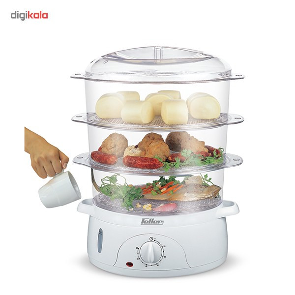 بخارپز فلر SC86 از بهترین بخارپزهای فلر است. با دارا بودن سهطبقه مجزا ظرفیت ِ زیادی برای پخت مواد غذایی ایجاد میکند. این طبقات بهراحتی رویهم سوار میشوند و کفیهای مشبک آنها باعث جریان یافتن بخار بین طبقات و مواد غذایی میشود. بدنه اصلی از جنس پلاستیک وزن سبکی دارد و درعینحال بهراحتی تمیز میشود. نشانگر میزان آب در جلوی دستگاه وجود دارد تا در صورت نیاز در حین پخت به دستگاه آب اضافه شود. مدل SC86 این قابلیت را ایجاد میکند تا در حین عملیات پخت از دو ورودی آب در دو طرف دستگاه به میزان دلخواه آب اضافه شود. زمان موردنیاز برای ایجاد بخار در این بخارپز کمتر از 1 دقیقه است. پیچ تنظیم زمان در این دستگاه امکان تعیین زمان پخت تا 60 دقیقه را فراهم میکند. حفظ ارزش مواد غذایی و از همه مهتر عدم نیاز به روغن، باعث تهیه یک وعده غذایی سالم میشود و استفاده از این دستگاه را توجیه میکند. لازم به ذکر است شرکت فلر، یک برند آلمانی درزمینهٔ تولید و عرضه لوازمخانگی است. محصولات این شرکت، طیف گستردهای از لوازمخانگی را در برمیگیرد: ماکروویو، آون برقی، چایساز، قهوهساز، کبابپز، ساندویچساز، پلوپز، آرامپز، سرخکن، چرخگوشت، غذاساز، جاروبرقی، اتو و غیره. مراکز گسترده خدمات پس از فروش و شبکه وسیع عرضه محصولات و نیز قیمت مناسب کالاها، از امتیازات ویژه محصولات فلر به شمار میآیند.