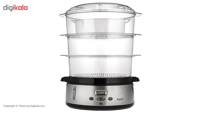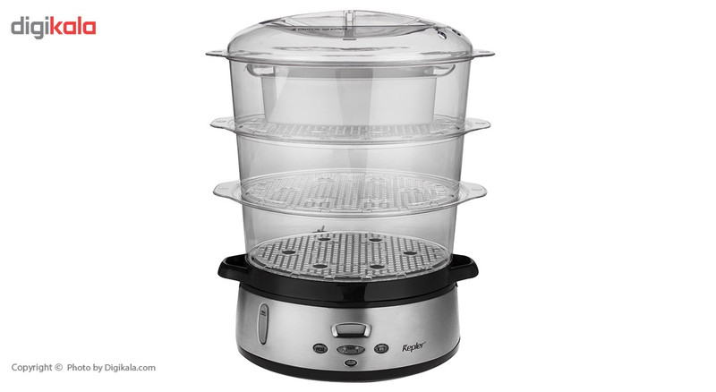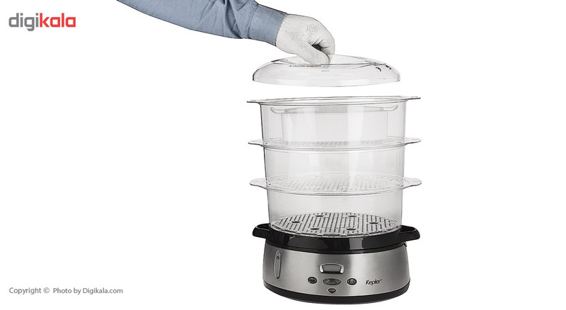 پختن غذاهای سالم و لذیذ نیازمند دستگاههای با کیفیت است که شما بتوانید سالمترین غذاها را با آنها طبخ نمایید.امروزه در همه وعده های غذایی، غذا هایی که نیاز به پختن با بخارپز را دارند به چشم میخورد.بخارپز کپلر مدل KSC240، یک بخارپز زیبا و با کیفیت است که دارای سه طبقه مجزا، که میتوانید غذاهای متفاوتی را به صورت همزمان پخت نمایید. این مدل بخارپز برای طبخ انواع سبزیجات، انواع حبوبات، انواع ماهی، انواع گوشت سفید و قرمز و سایر مواد غذایی مورد استفاده قرار میگیرد. توان مصرفی این دستگاه 800 وات است. بدنه این دستگاه ترکیبی از استیل و پلاستیک مقاوم و بدنه آن از جنس طلق فشرده که ضد شوک حرارتی است، ساخته میشود. این دستگاه دارای یک صفحه نمایش LCD برای نمایش زمان پخت است که در تایمر 24 ساعته مورد استفاده قرار میگیرد. این دستگاه بخارپز دارای گرم کن خودکار است که پس از اتمام تولید بخار در مرحله توقف، هر 8 دقیقه یکبار به مدت 2 دقیقه غذا گرم میشود. پیشنهاد میشود که برای بالا رفتن طول عمر دستگاه، پس از هر 8 بار استفاده دستگاه بخارپز را رسوب زدایی نمایید.