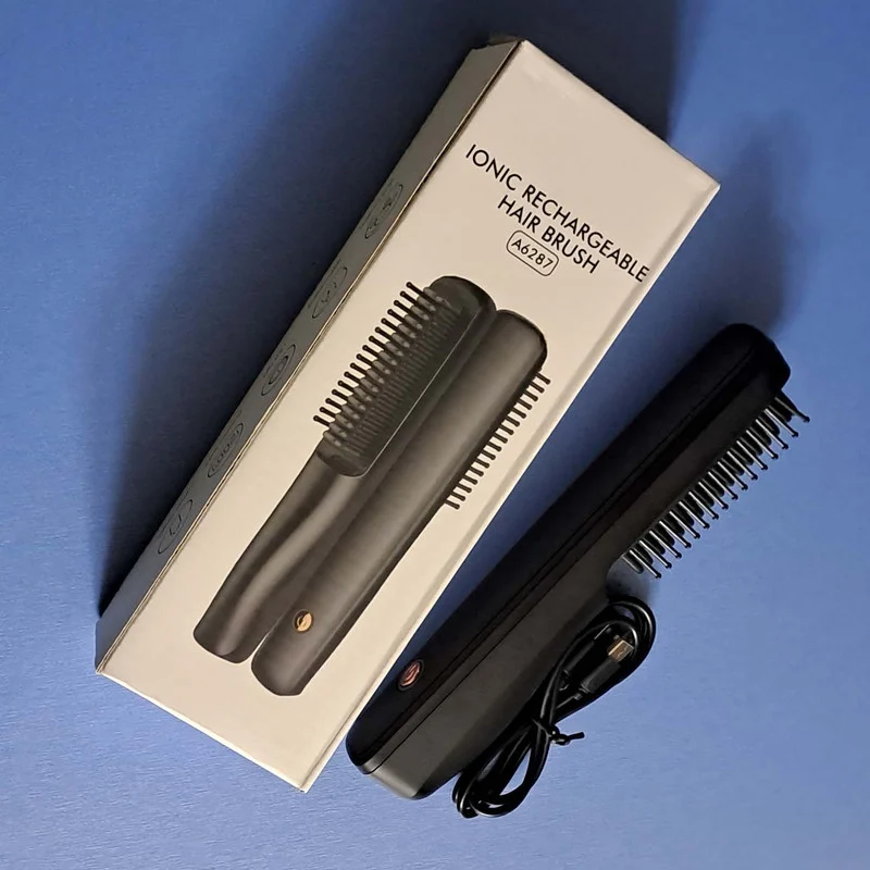 برس و حالت دهنده شارژی قابل استفاده در حال حرکت و مسافرت است. با توان 25 وات و دمای 200 درجه گرمای مناسبی دارد و با شارژ کامل یک ساعت عملکرد گرمایی دارد.
