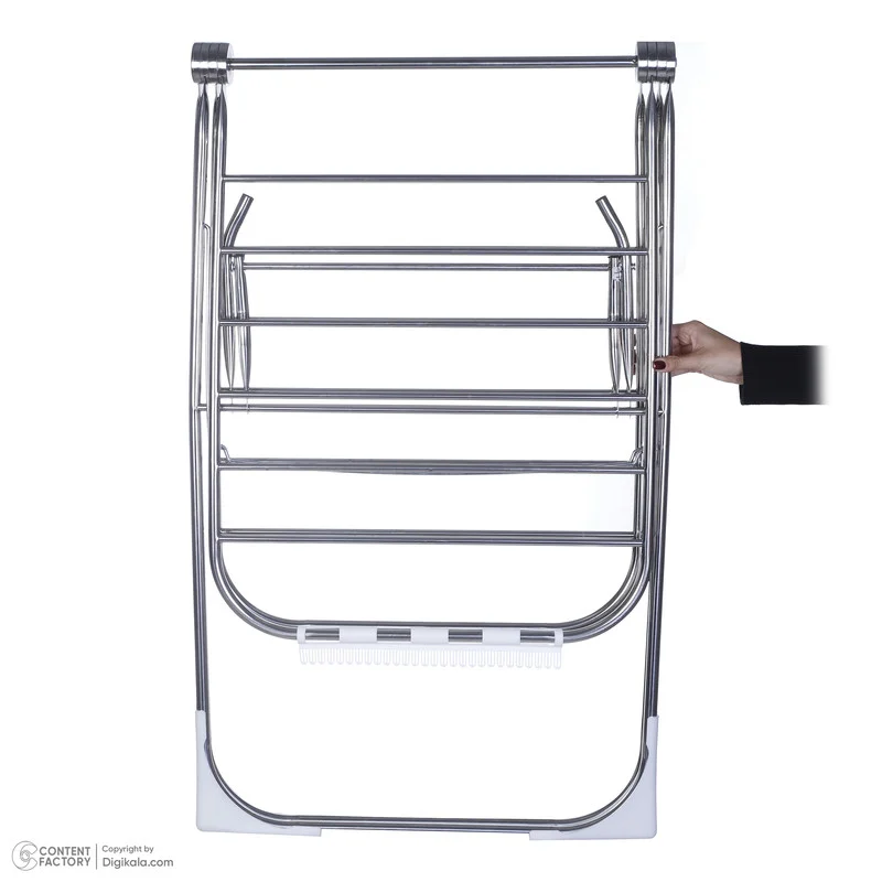 با توجه به محدودیت فضا در خانهها و آپارتمانها باید از وسایلی کمجا و درعینحال با کارایی بالا استفاده کنیم. بند رخت استیل یکی از محصولات متنوع برند بریتکس (Brittex) که با قابلیت جمع شدن (تاشو) ازجمله بهترین وسایل برای خشک کردن لباسها در خانه محسوب میشود. باوجوداین بند رخت قادر هستید حتی در فضای داخلی اتاقها نیز لباسهایتان را خشک کنید. بعد از باز کردن بند رخت 18 میلهی فلزی و محکم را در اختیار دارید که برای خشک کردن انواع مانتو، پالتو، روسری و شال و… مناسب هستند. طول کلی بند رخت بعد از باز کردن به 147 سانتیمتر میرسد و درنتیجه فضای کافی برای خشک کردن لباسهای مختلف را برایتان فراهم میکند. ناگفته نماند که میلههایی که در قسمت پایین بند رخت مشاهده میکنید، برای جوراب، لباسزیر، دستمالهای نظافتی و… قابلاستفاده هستند. این محصول کاربردی از فلز استیل ساخته شده است که ازنظر کیفیت در سطح بهنسبت مطلوبی قرار دارد و در برابر وزن انواع پوشاک، مقاوم و مستحکم است. این بند رخت کاملادربرابر زنگزدگی مقاوم میباشد.