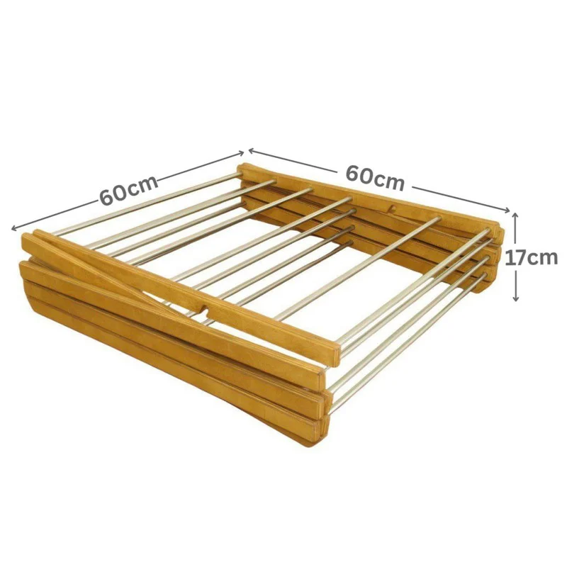 بند رخت جمع شو اکاردئونی مدل سلوک ساخته شده از چوب پلی وود خارجی ضد آب با روکش روغن گیاهی آنتی یو وی مخصوص و میله های استیل ضد زنگ ( نگیر : آهن ربا به آن نمی چسبد ) مقاوم در محیط های مرطوب و محیط باز ، با جای پهن لباس مناسب ( طول مجموع میله های قابل استفاده ۸ متر ) و با ارتفاع ۱۳۰ سانت برای پهن کردن ملحفه هم مناسب است. این محصول با دقت بالا تولید شده و از زیبایی و استحکام بالایی برخوردار است.