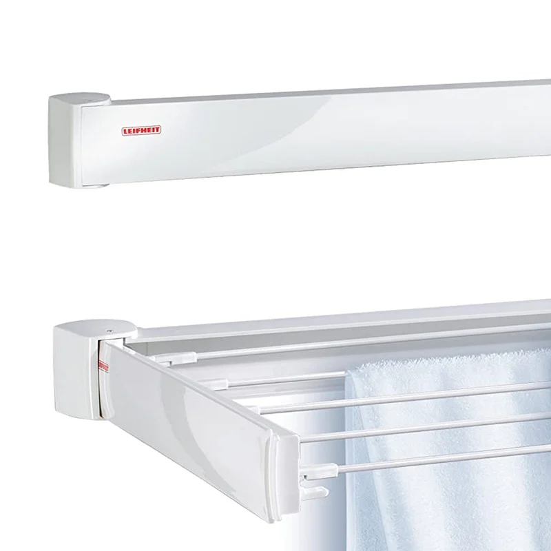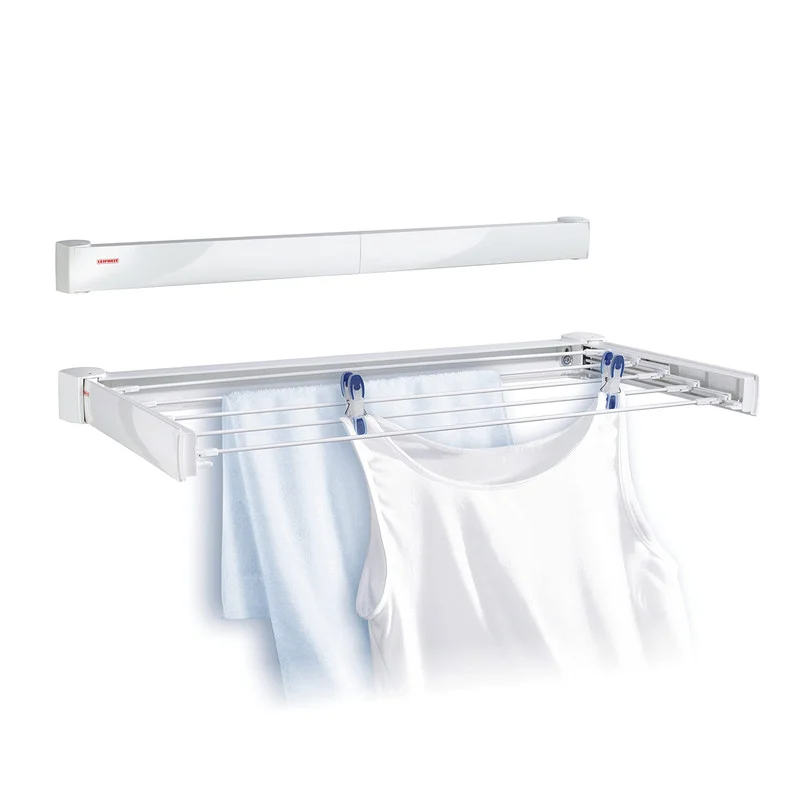 برند آلمانی لایف هایت از پیشگامان طراحی و تولید ابزار و لوازم نظافت و شستشو می باشد. این برند علاوه بر این در زمینه تولید محصولات مرتبط به آشپزخانه نیز پیشرو بوده و محصولات این برند در بیش از 80 کشور جهان از محبوبیت و مقبولیت بسیار بالایی برخودار می باشد. بند رخت مدل TELE72 از جمله محصولات بسیار پرطرفدار این برند محبوب محبوب آلمانی می باشد که تخصص ویژه ای در طراحی و ساخت بند رخت های داخلی دارد. این مدل بند رخت حدود دو کیلو گرم وزن داشته از آلیاژ آلومینیوم ساخته شده و به سادگی و با استفاده از اتصالات و دستور العمل نصب درون بسته بندی به دیوار متصل شده و به هنگام باز شدن معادل فضای 7.5 متر طناب را در 8 ردیف برای شما فراهم می کند. عرض این بند رخت 103 و طول هر بازوی آن به هنگام باز شدن کامل 53 سانتیمتر می باشد. این بند رخت قابل استفاده در فضای داخل یا خارج از منزل بوده و به دلیل کیفیت بالای ساخت و مواد مقاوم بکار رفته در ساخت آن در مقابل زنگ زدگی و آفتاب و گرد و غبار مقاوم می باشد. در هنگام عدم استفاده و بسته شدن برجستگی این بند رخت از روی دیوار حدود 6 سانتیمتر می باشد.